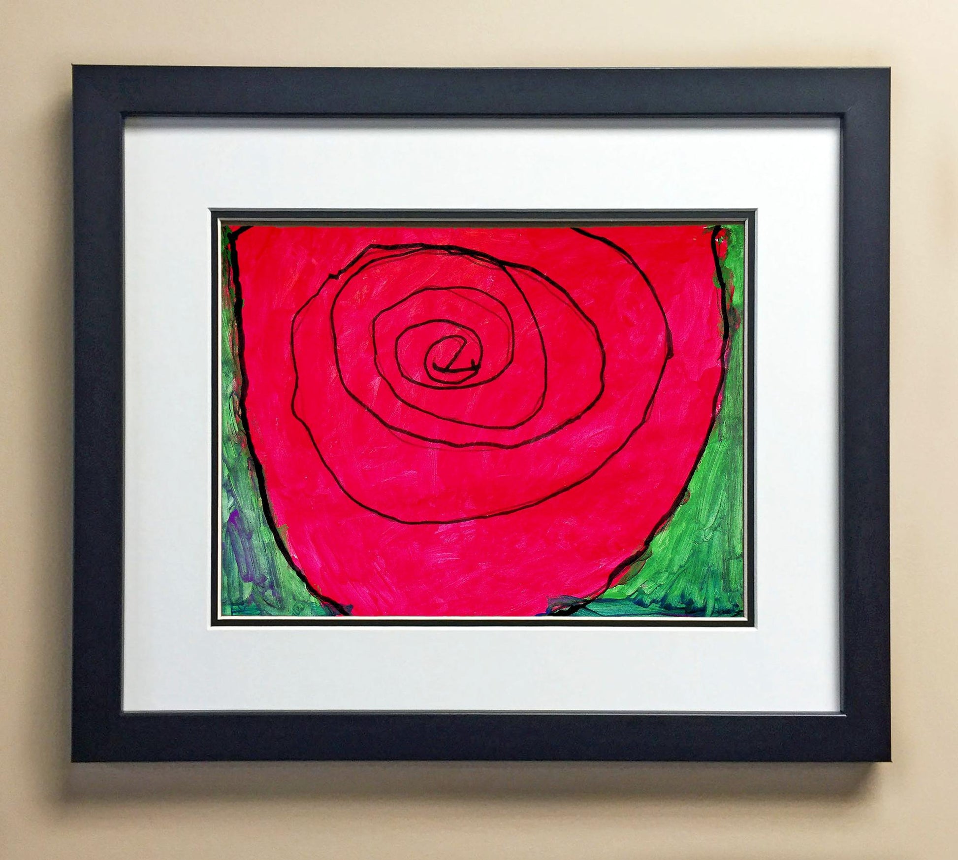 Included with the purchase is the Students Artwork, Frame, double matboard, shatter proof plexiglass, and a ready to hang backerboard with turnbuttons