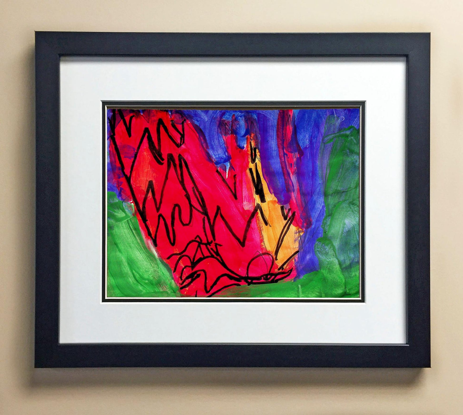 Included with the purchase is the Students Artwork, Frame, double matboard, shatter proof plexiglass, and a ready to hang backerboard with turnbuttons