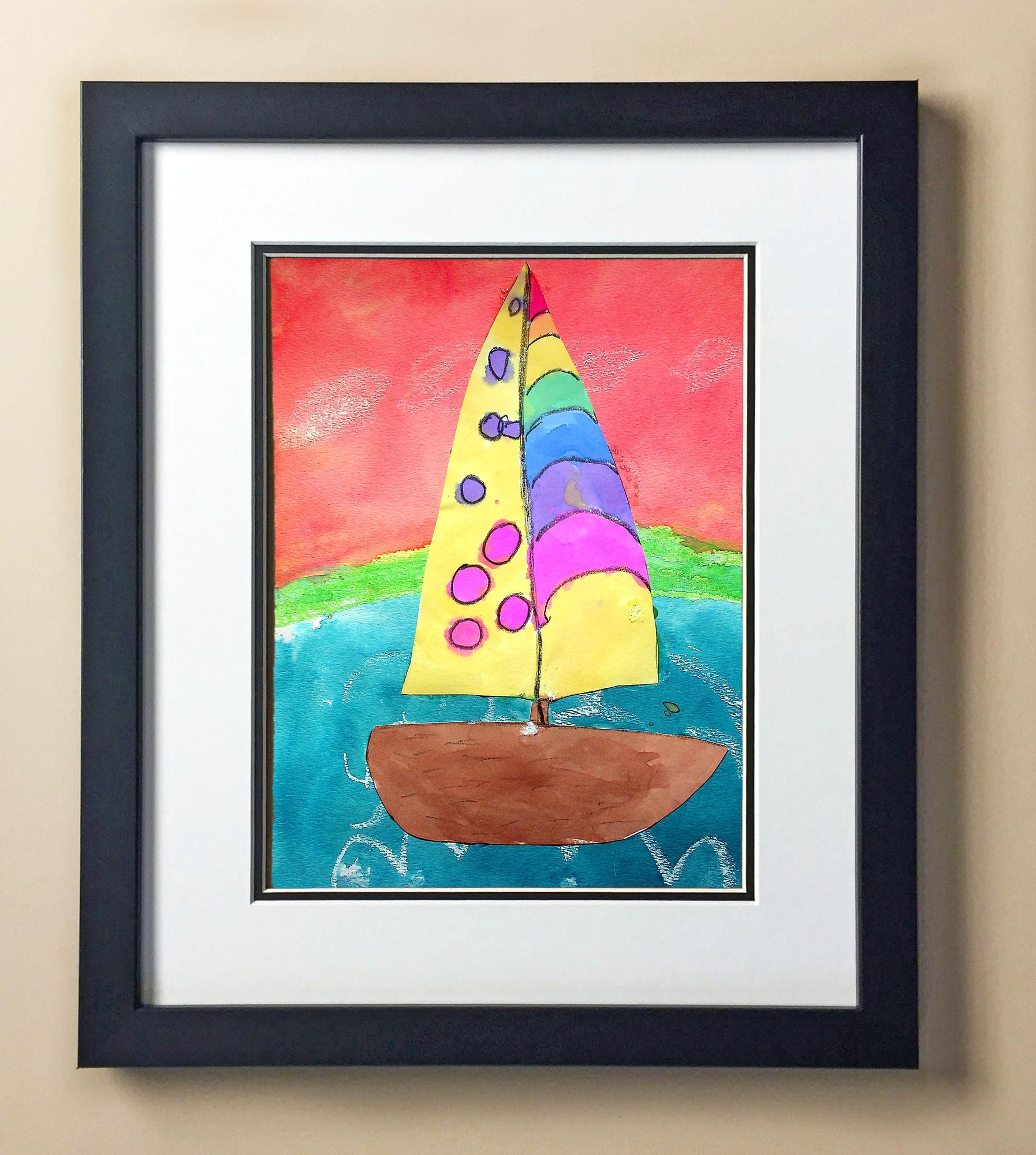 Included with the purchase is the Students Artwork, Frame, double matboard, shatter proof plexiglass, and a ready to hang backerboard with turnbuttons