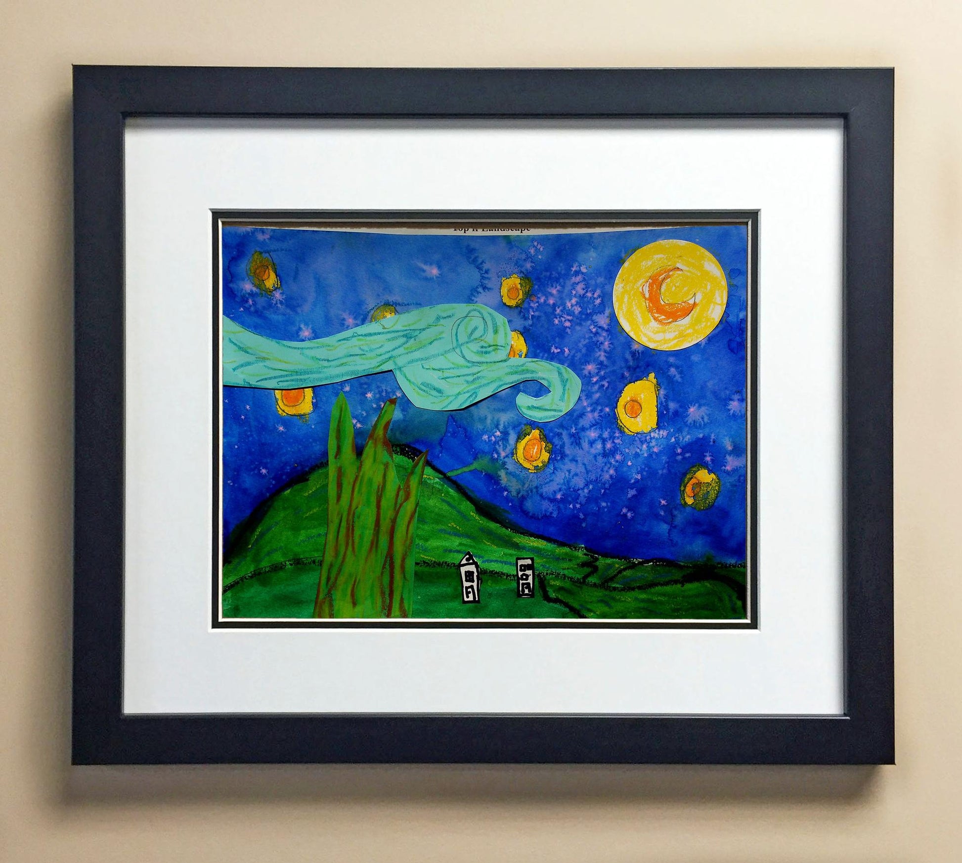 Included with the purchase is the Students Artwork, Frame, double matboard, shatter proof plexiglass, and a ready to hang backerboard with turnbuttons