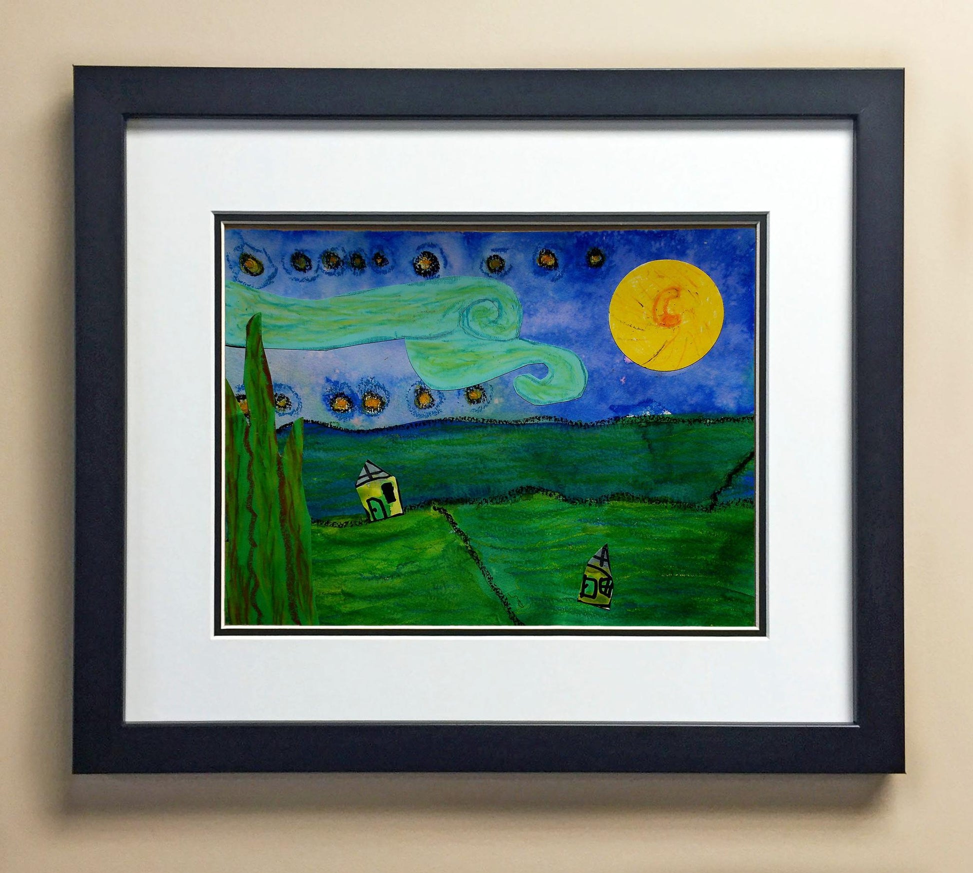 Included with the purchase is the Students Artwork, Frame, double matboard, shatter proof plexiglass, and a ready to hang backerboard with turnbuttons