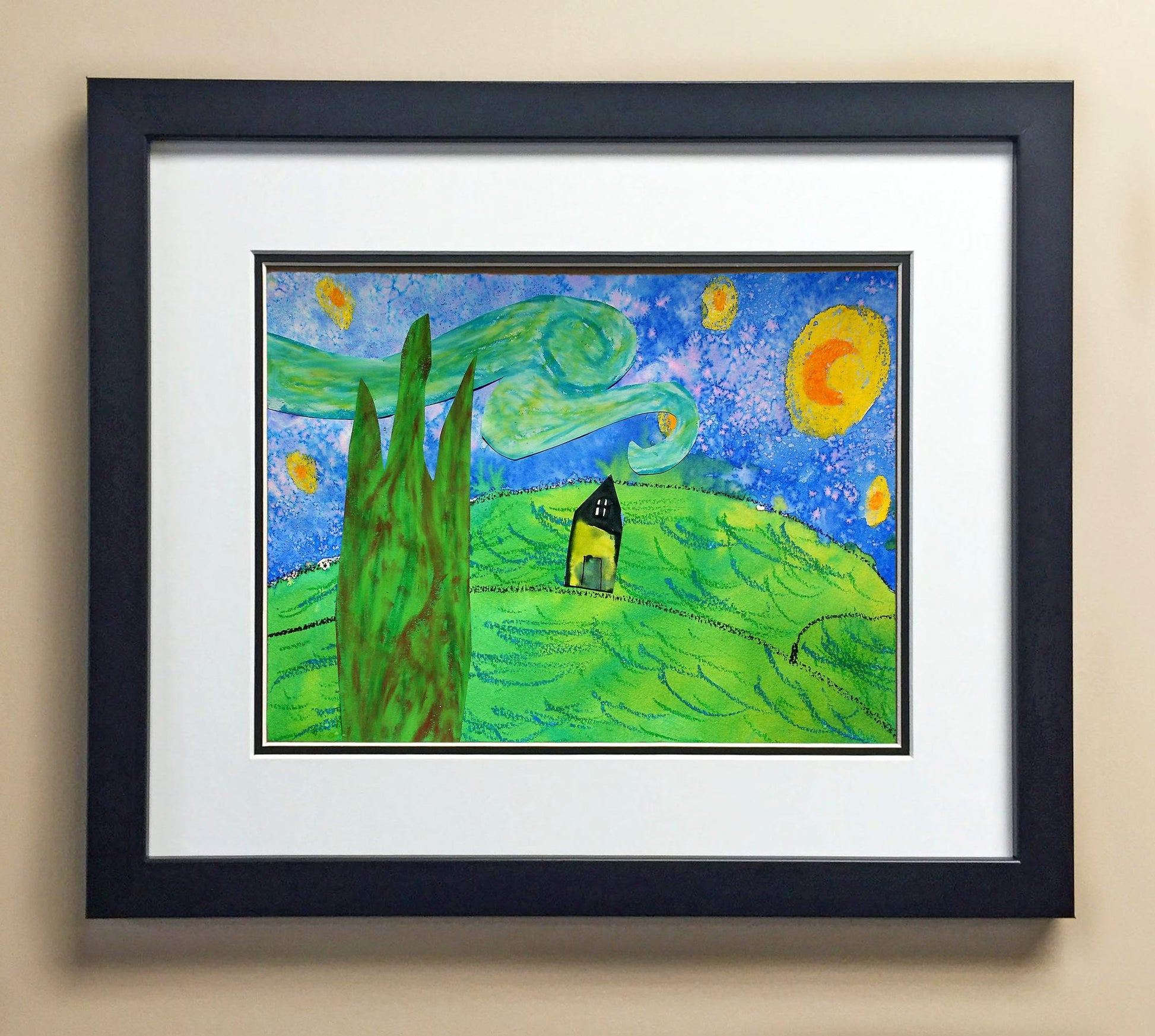 Included with the purchase is the Students Artwork, Frame, double matboard, shatter proof plexiglass, and a ready to hang backerboard with turnbuttons