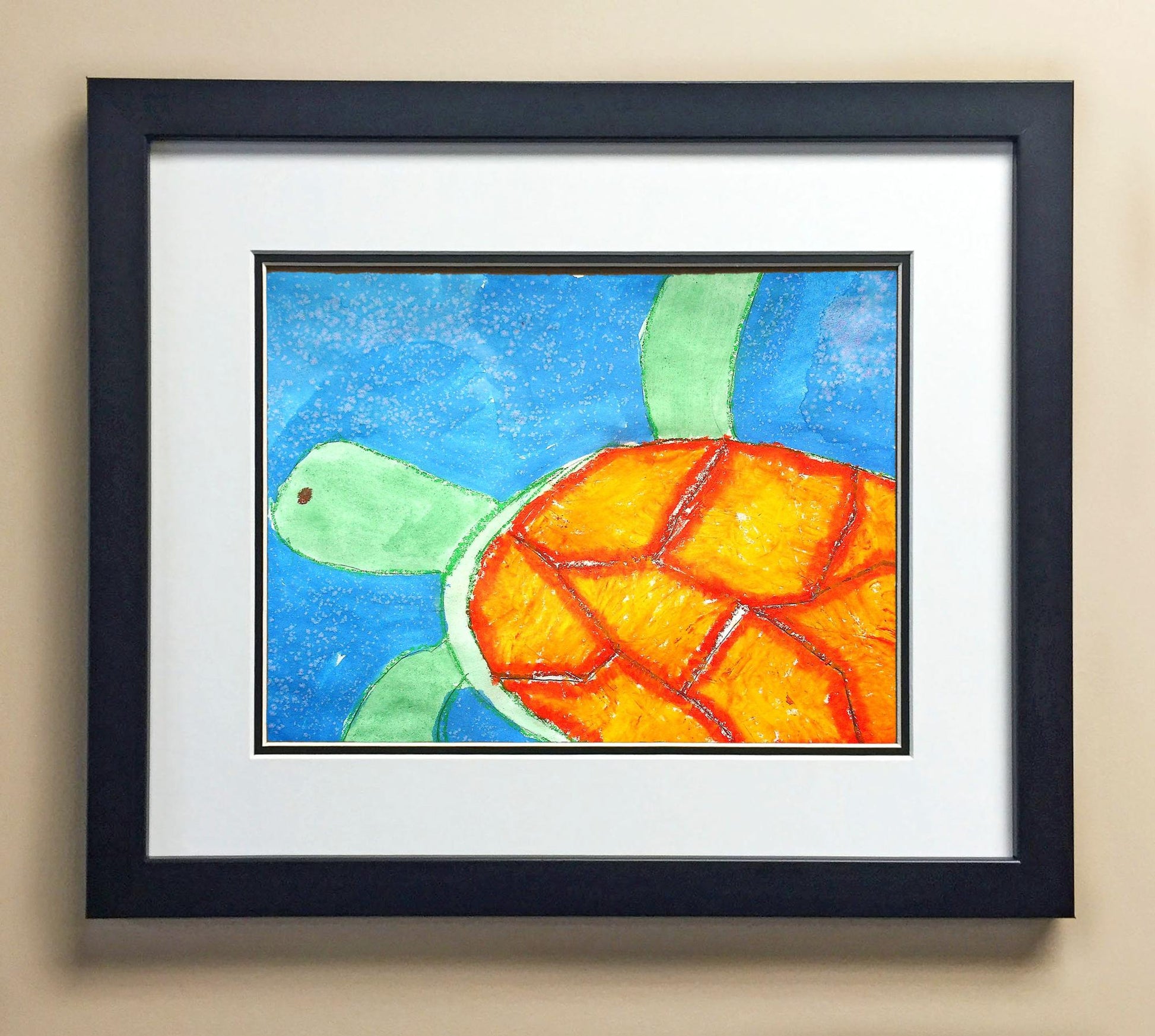 Included with the purchase is the Students Artwork, Frame, double matboard, shatter proof plexiglass, and a ready to hang backerboard with turnbuttons