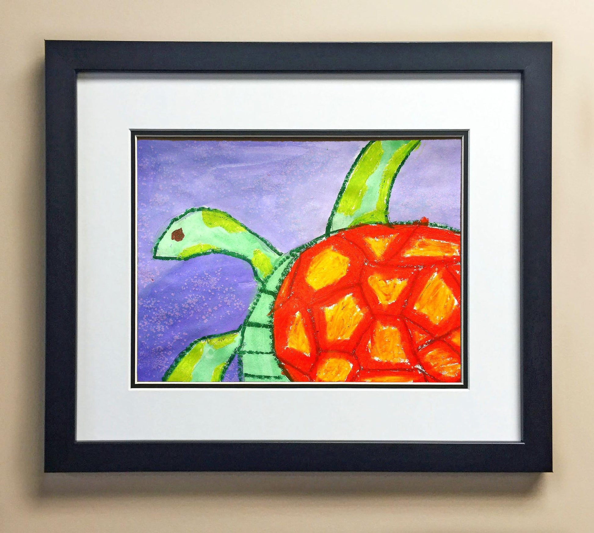 Included with the purchase is the Students Artwork, Frame, double matboard, shatter proof plexiglass, and a ready to hang backerboard with turnbuttons