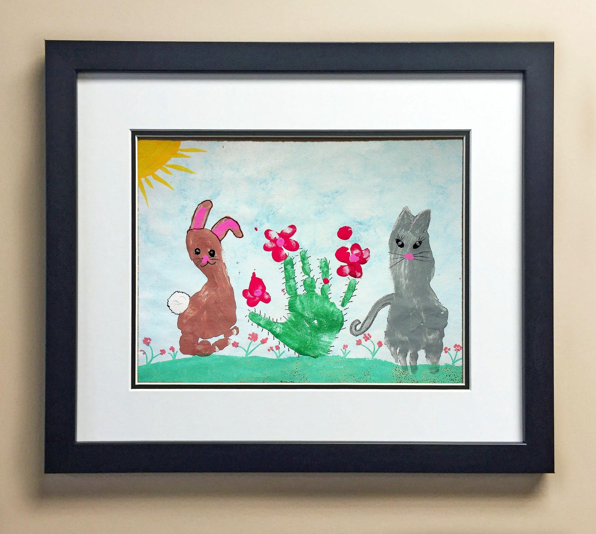 Included with the purchase is the Students Artwork, Frame, double matboard, shatter proof plexiglass, and a ready to hang backerboard with turnbuttons