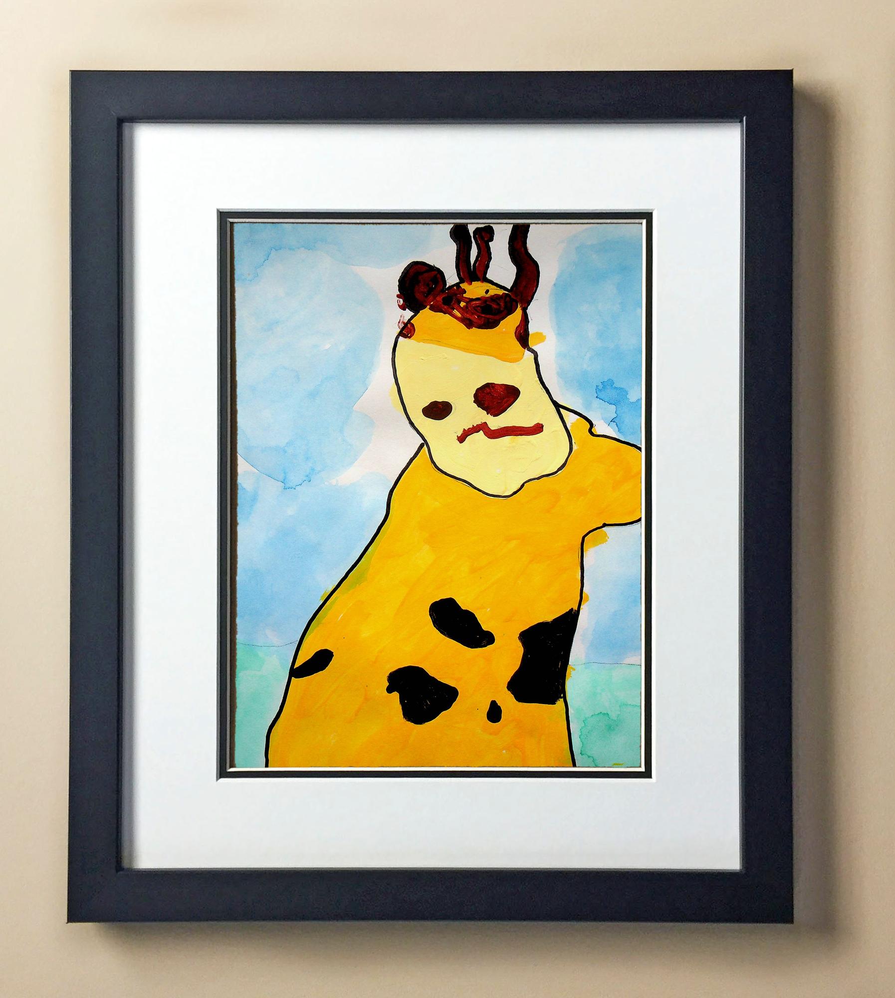 Included with the purchase is the Students Artwork, Frame, double matboard, shatter proof plexiglass, and a ready to hang backerboard with turnbuttons