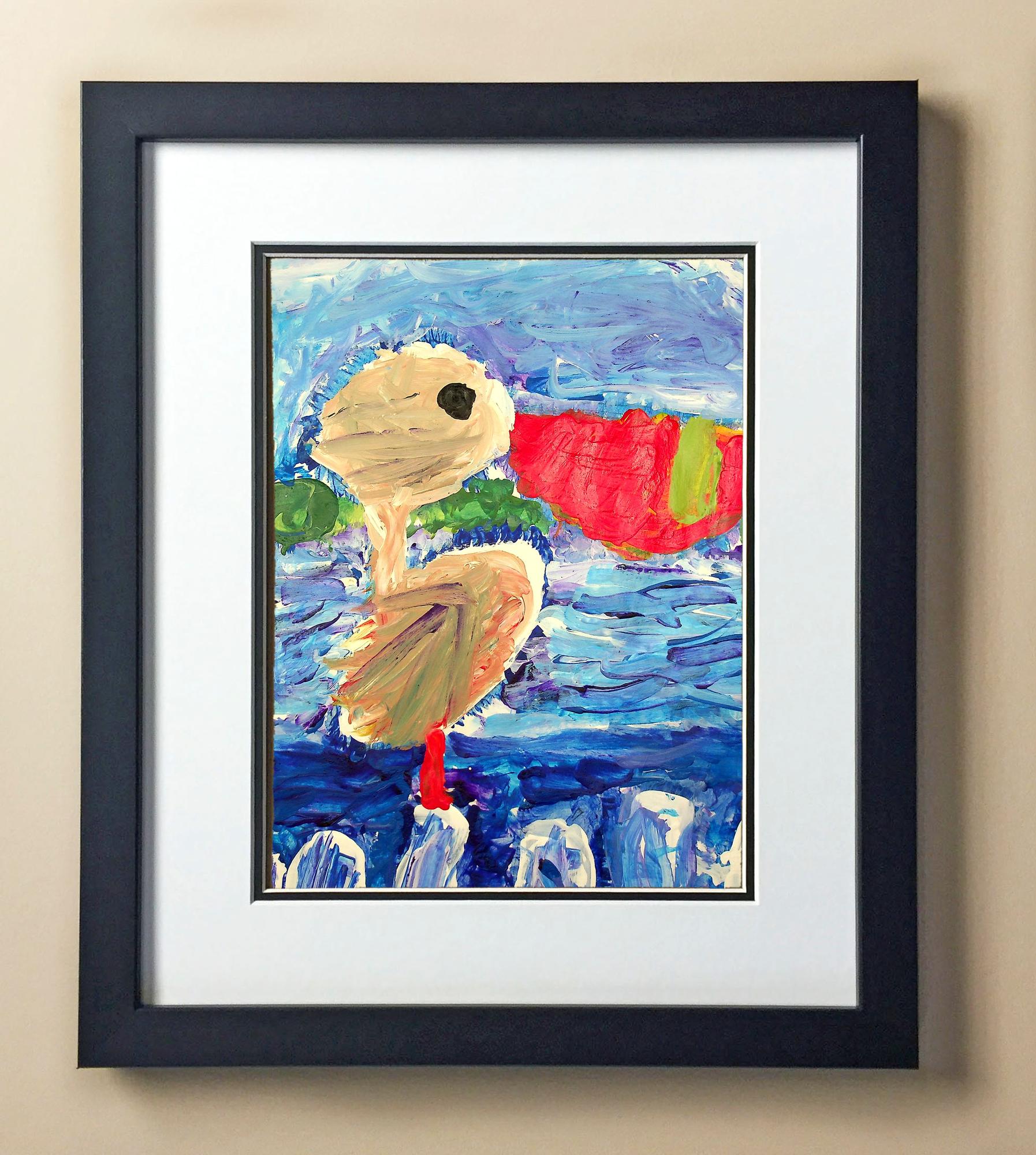 Included with the purchase is the Students Artwork, Frame, double matboard, shatter proof plexiglass, and a ready to hang backerboard with turnbuttons