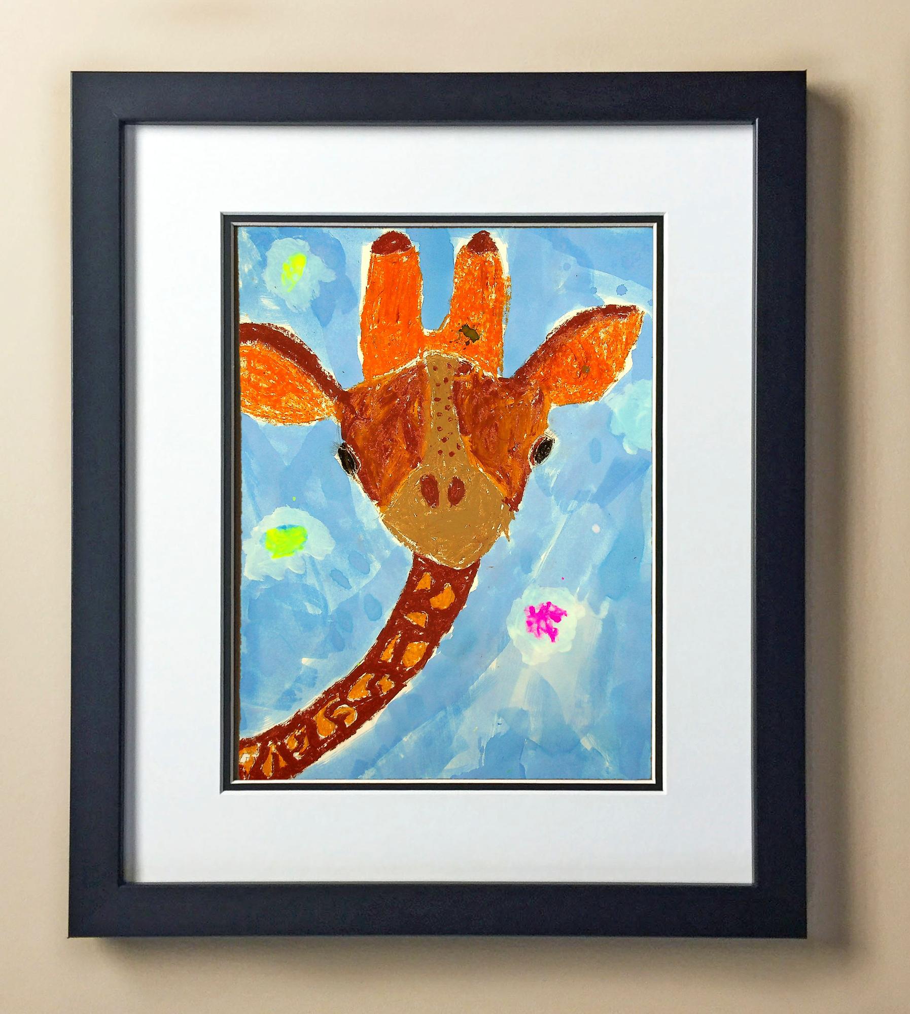 Included with the purchase is the Students Artwork, Frame, double matboard, shatter proof plexiglass, and a ready to hang backerboard with turnbuttons