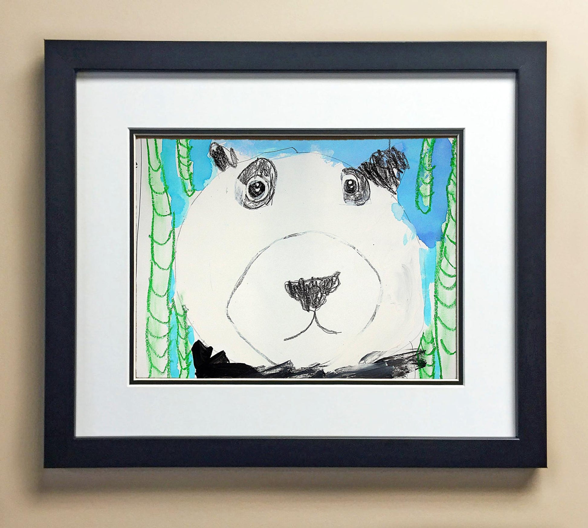 Included with the purchase is the Students Artwork, Frame, double matboard, shatter proof plexiglass, and a ready to hang backerboard with turnbuttons