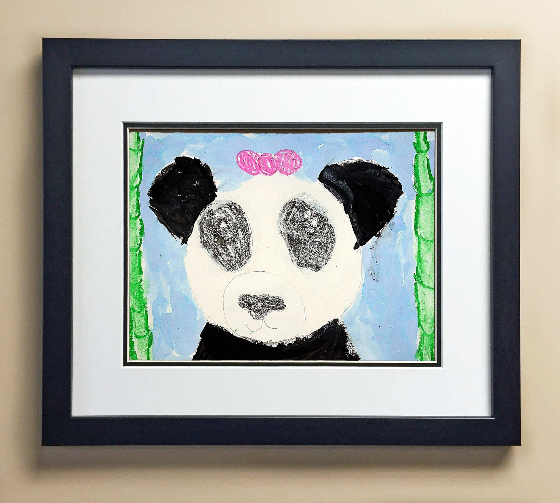 Included with the purchase is the Students Artwork, Frame, double matboard, shatter proof plexiglass, and a ready to hang backerboard with turnbuttons