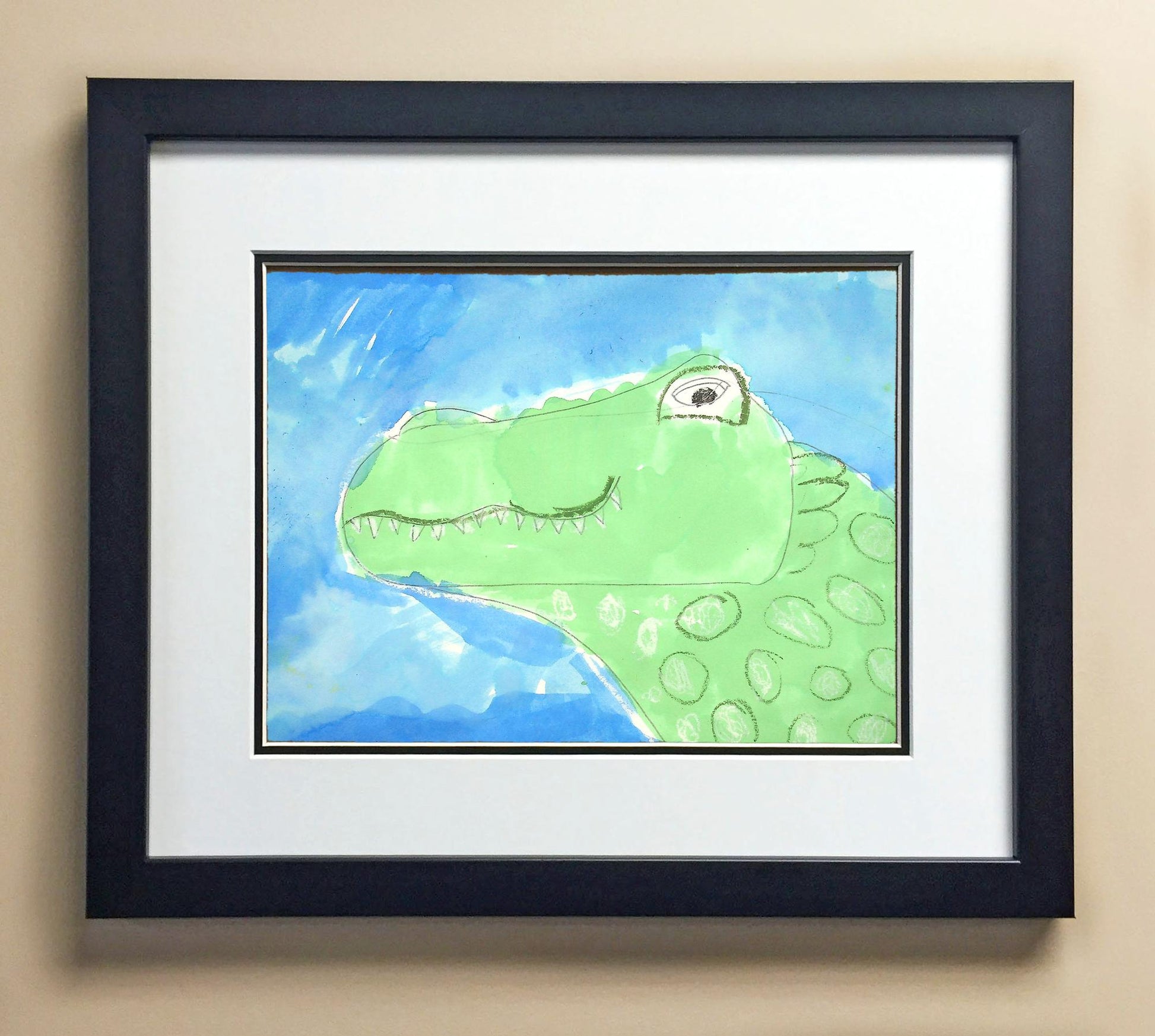 Included with the purchase is the Students Artwork, Frame, double matboard, shatter proof plexiglass, and a ready to hang backerboard with turnbuttons
