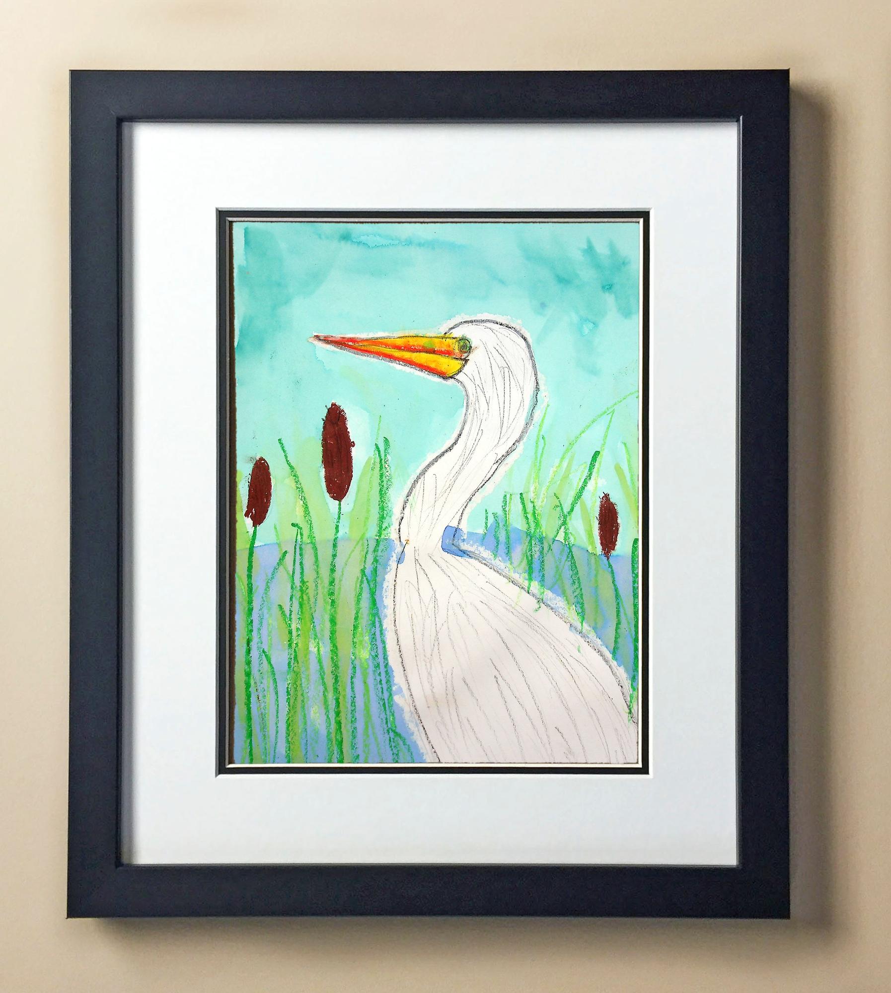 Included with the purchase is the Students Artwork, Frame, double matboard, shatter proof plexiglass, and a ready to hang backerboard with turnbuttons