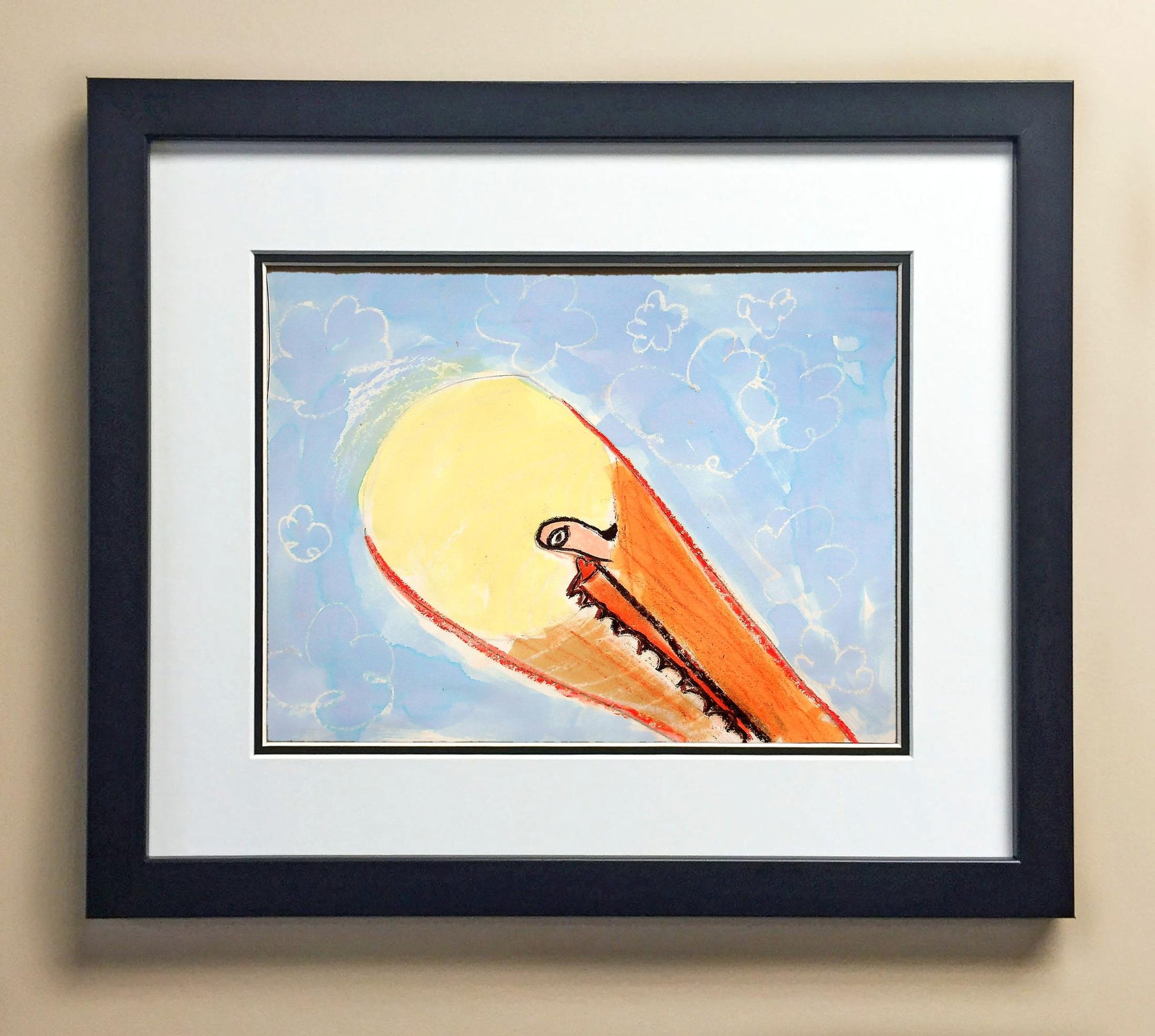 Included with the purchase is the Students Artwork, Frame, double matboard, shatter proof plexiglass, and a ready to hang backerboard with turnbuttons