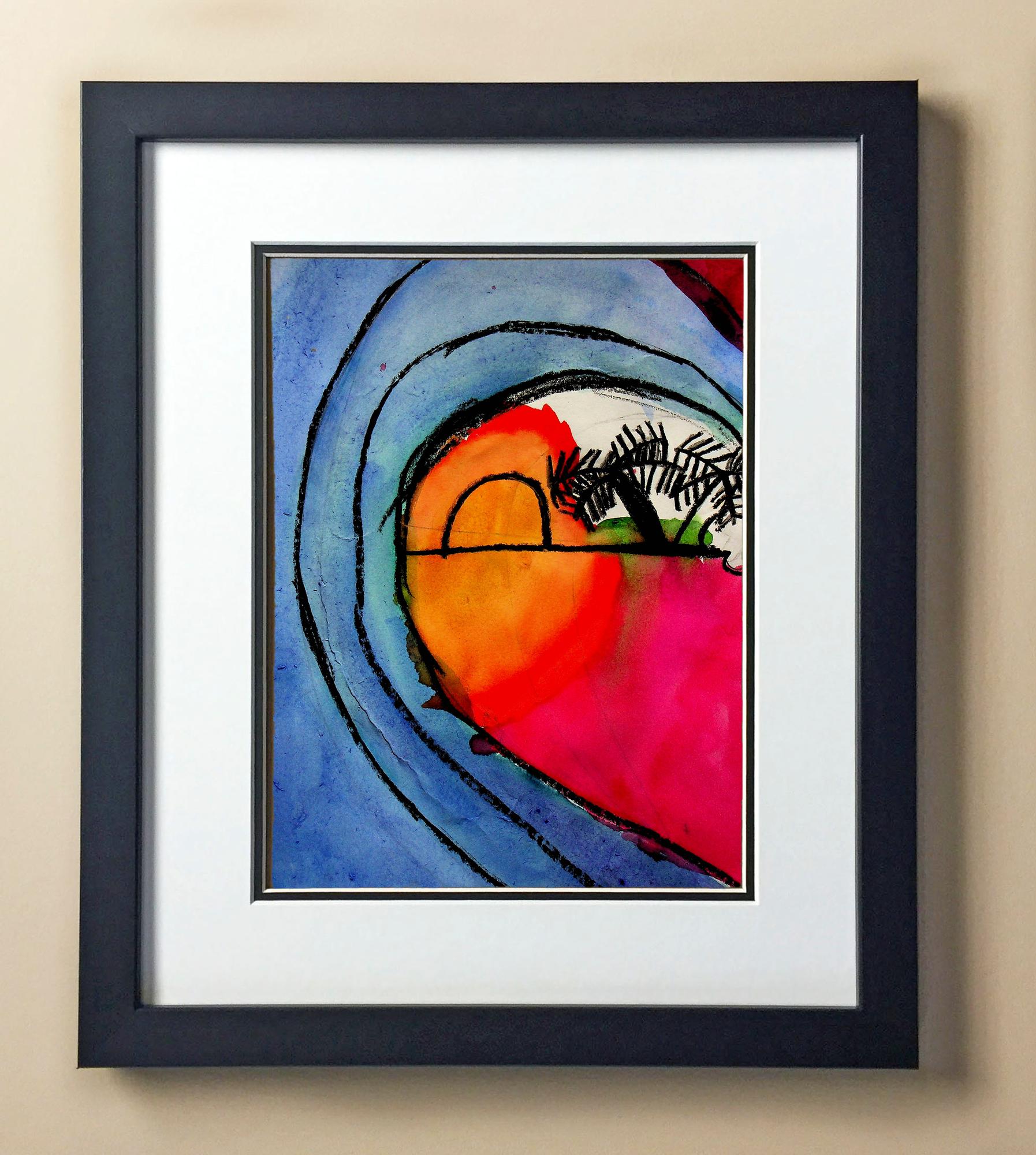 Included with the purchase is the Students Artwork, Frame, double matboard, shatter proof plexiglass, and a ready to hang backerboard with turnbuttons