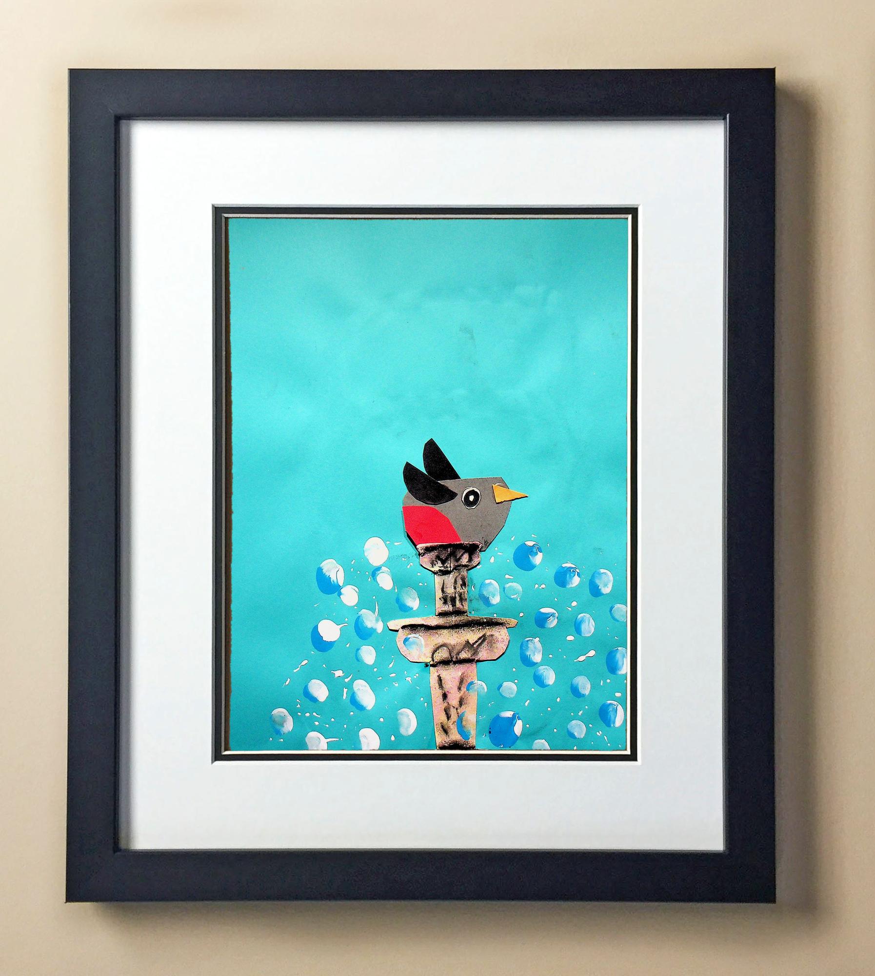 Included with the purchase is the Students Artwork, Frame, double matboard, shatter proof plexiglass, and a ready to hang backerboard with turnbuttons