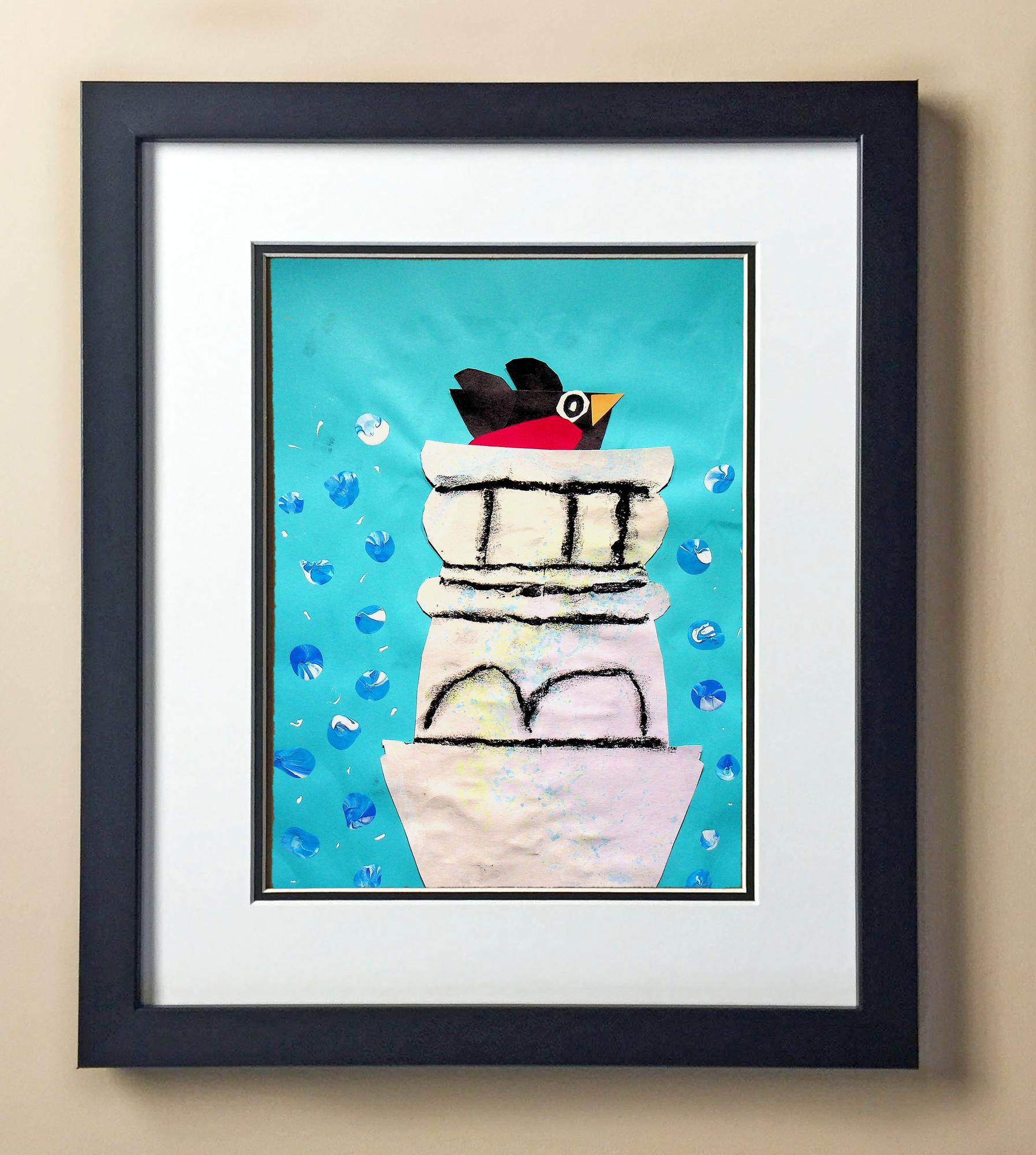 Included with the purchase is the Students Artwork, Frame, double matboard, shatter proof plexiglass, and a ready to hang backerboard with turnbuttons