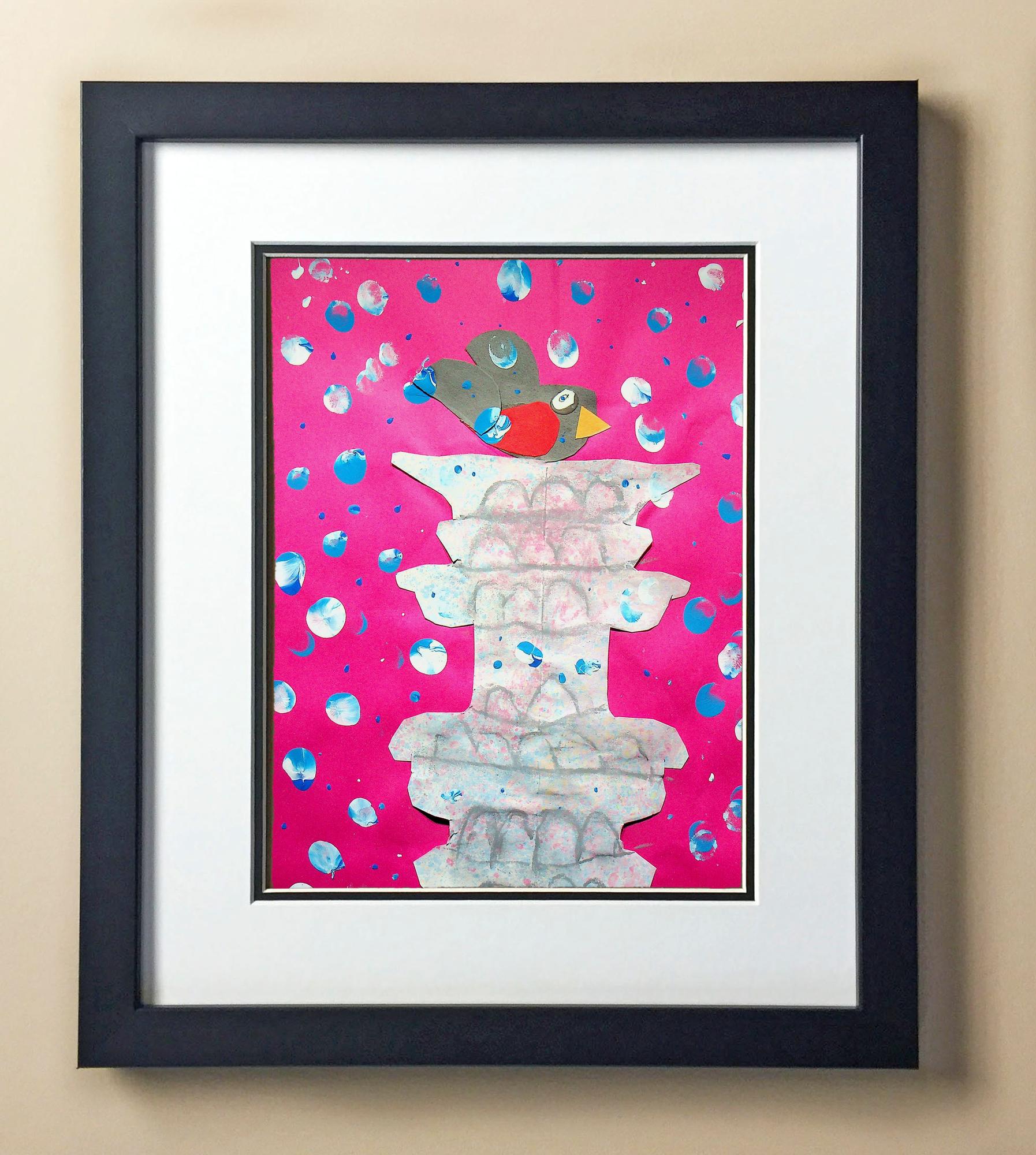 Included with the purchase is the Students Artwork, Frame, double matboard, shatter proof plexiglass, and a ready to hang backerboard with turnbuttons