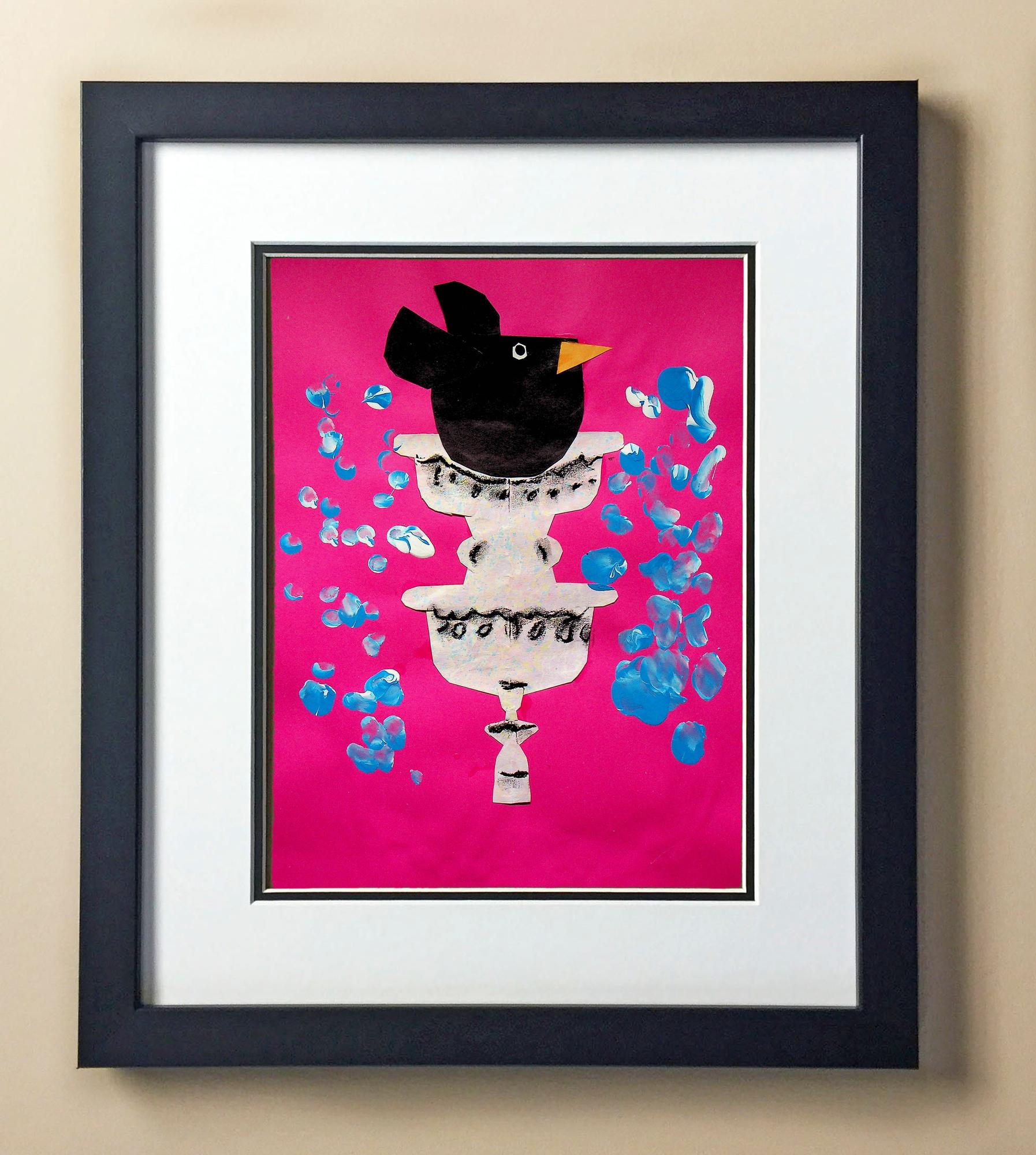 Included with the purchase is the Students Artwork, Frame, double matboard, shatter proof plexiglass, and a ready to hang backerboard with turnbuttons