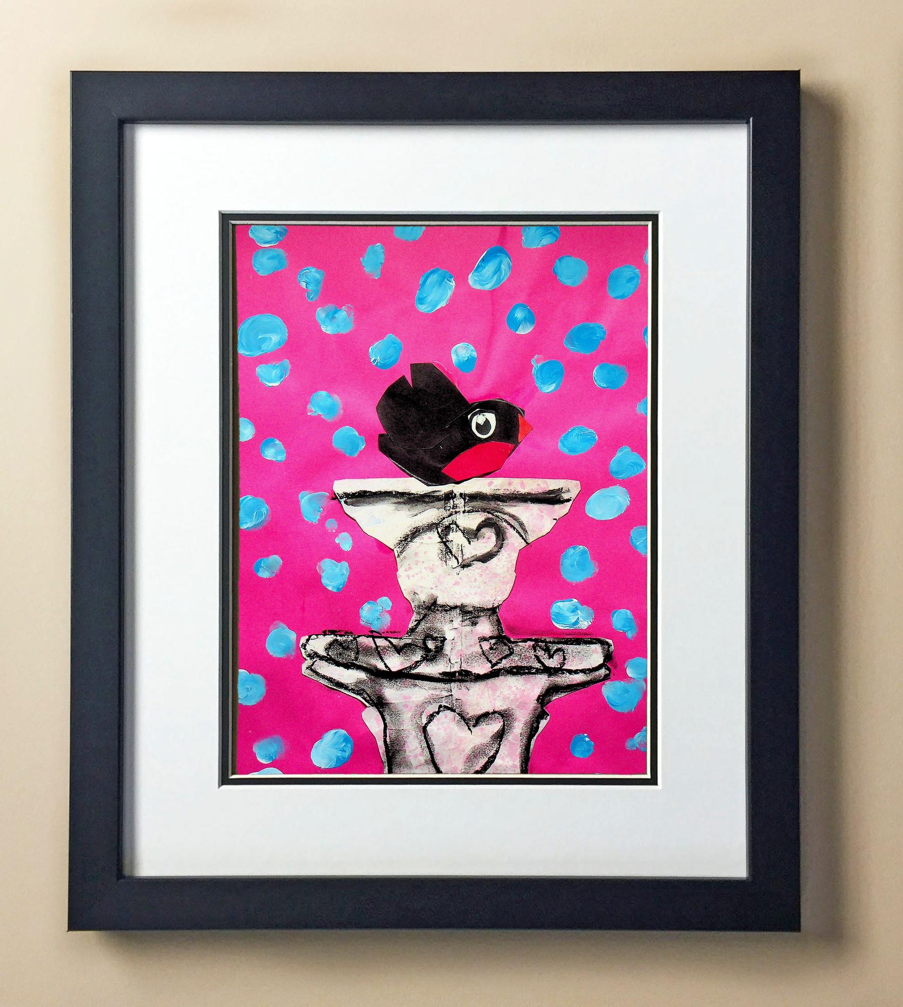 Included with the purchase is the Students Artwork, Frame, double matboard, shatter proof plexiglass, and a ready to hang backerboard with turnbuttons