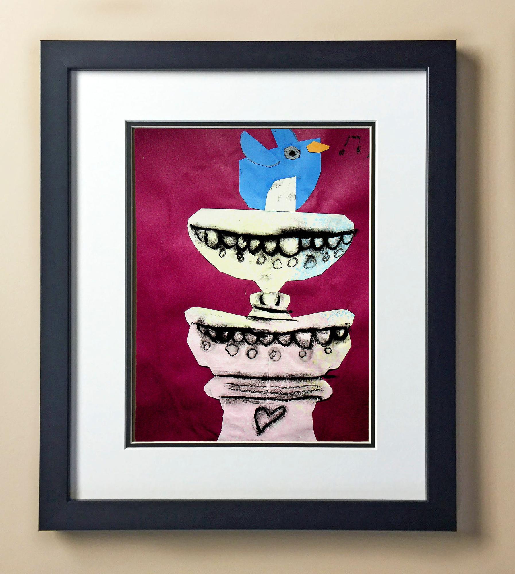 Included with the purchase is the Students Artwork, Frame, double matboard, shatter proof plexiglass, and a ready to hang backerboard with turnbuttons