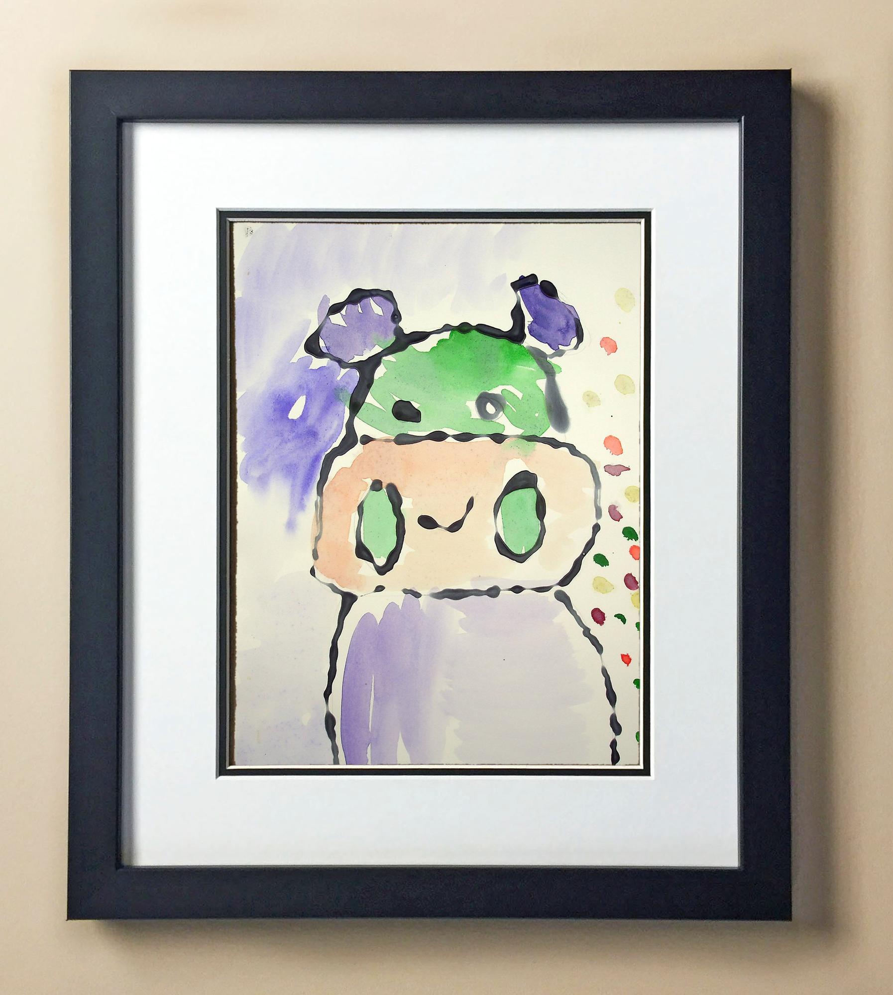 Included with the purchase is the Students Artwork, Frame, double matboard, shatter proof plexiglass, and a ready to hang backerboard with turnbuttons