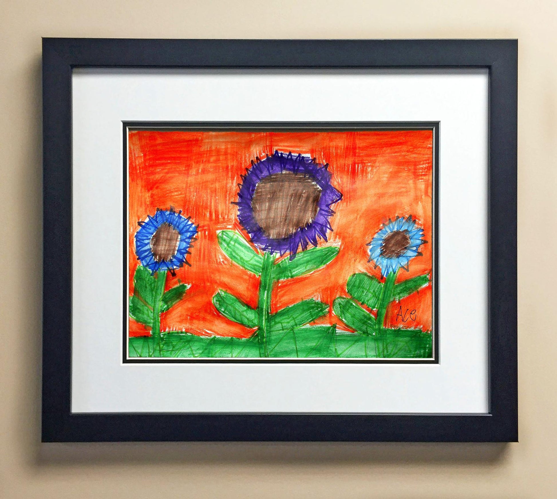 Included with the purchase is the Students Artwork, Frame, double matboard, shatter proof plexiglass, and a ready to hang backerboard with turnbuttons