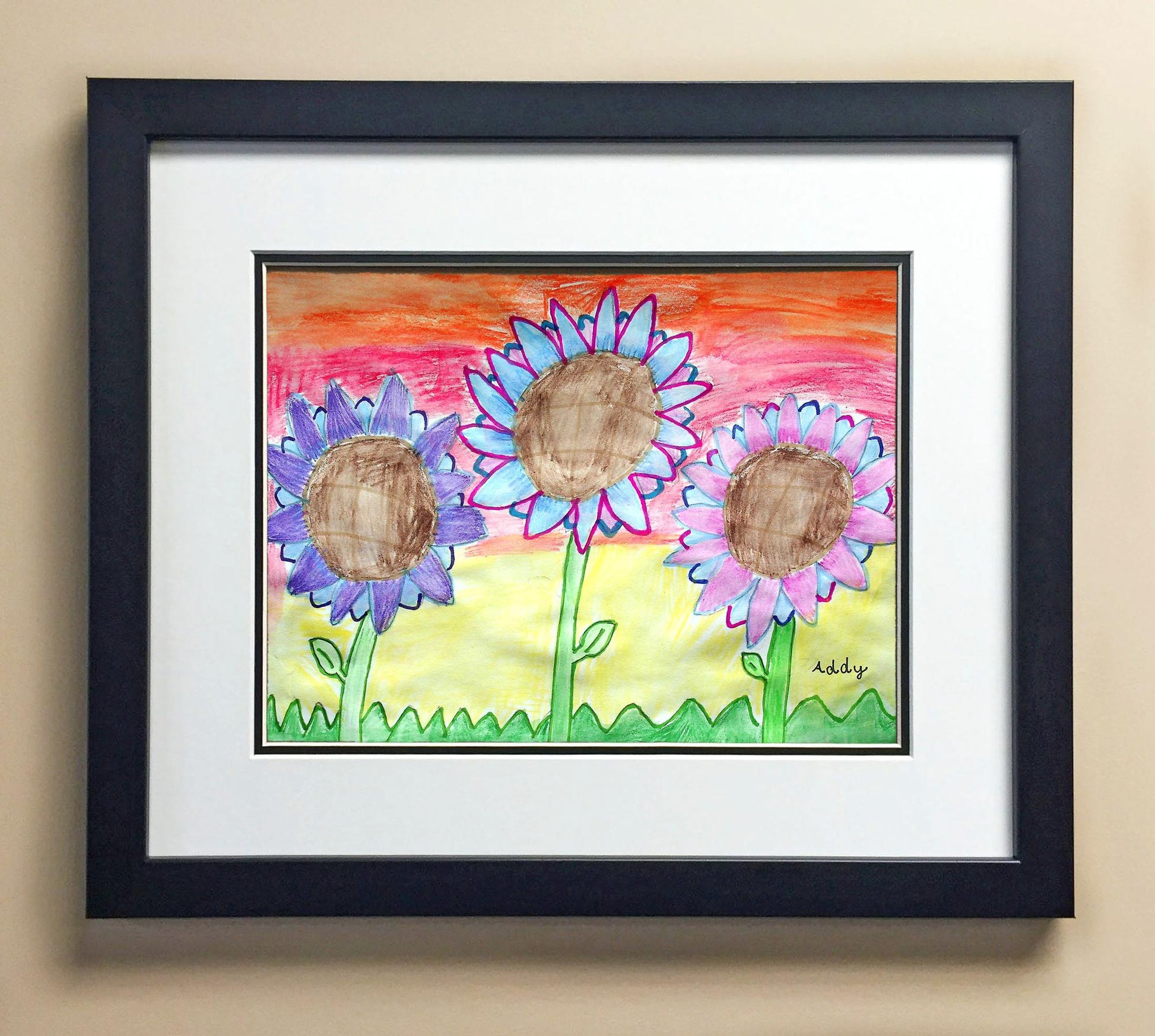Included with the purchase is the Students Artwork, Frame, double matboard, shatter proof plexiglass, and a ready to hang backerboard with turnbuttons