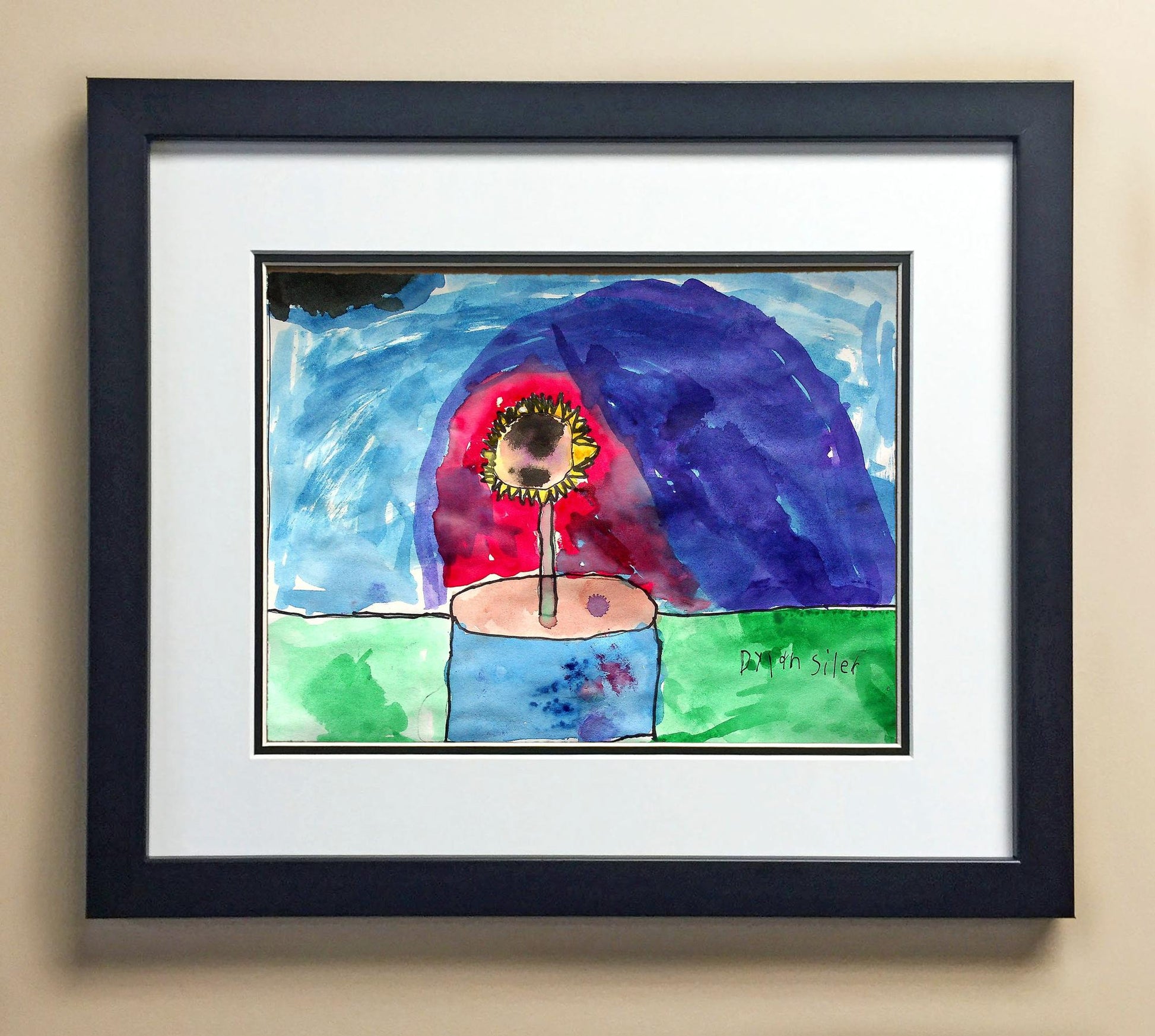 Included with the purchase is the Students Artwork, Frame, double matboard, shatter proof plexiglass, and a ready to hang backerboard with turnbuttons