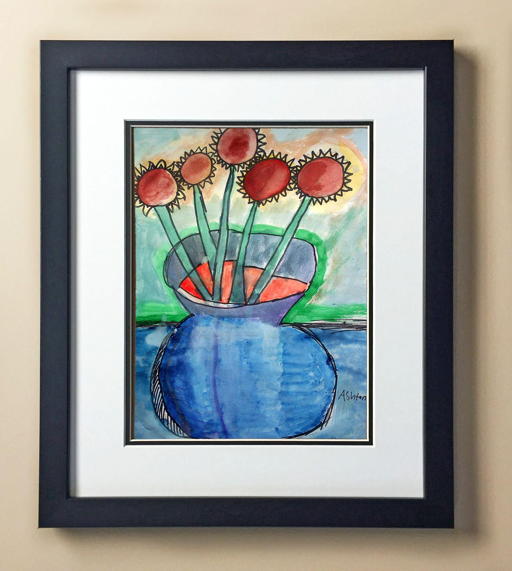 Included with the purchase is the Students Artwork, Frame, double matboard, shatter proof plexiglass, and a ready to hang backerboard with turnbuttons