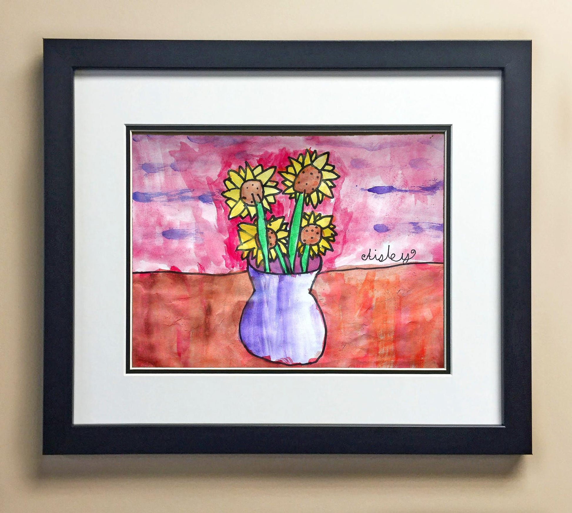 Included with the purchase is the Students Artwork, Frame, double matboard, shatter proof plexiglass, and a ready to hang backerboard with turnbuttons