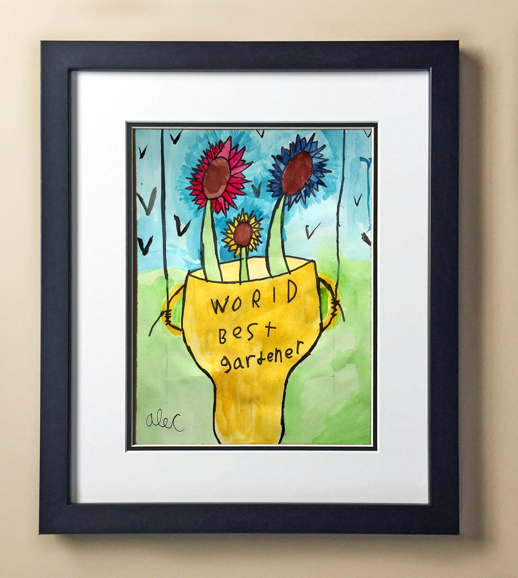 Included with the purchase is the Students Artwork, Frame, double matboard, shatter proof plexiglass, and a ready to hang backerboard with turnbuttons