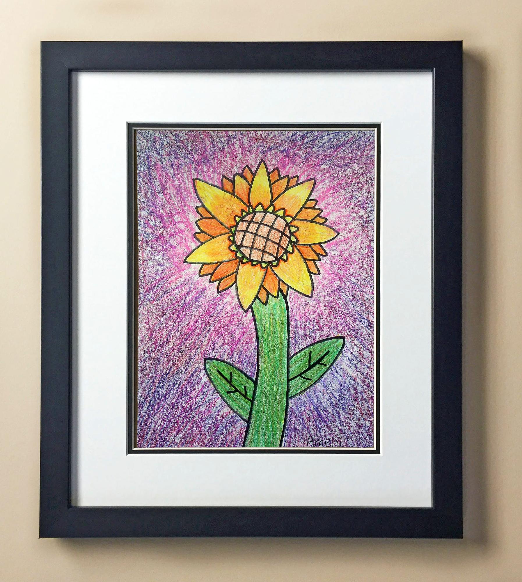 Included with the purchase is the Students Artwork, Frame, double matboard, shatter proof plexiglass, and a ready to hang backerboard with turnbuttons