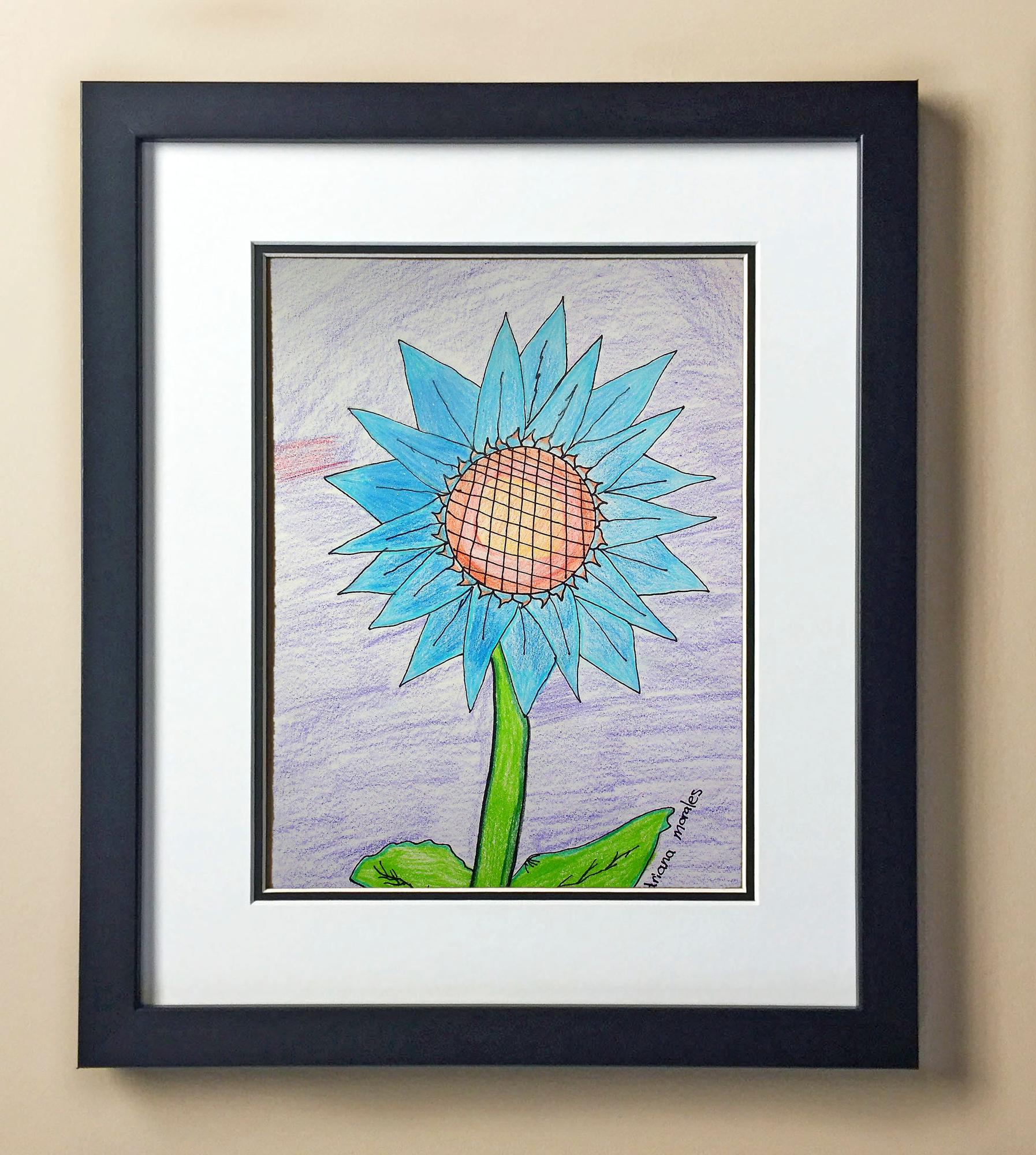 Included with the purchase is the Students Artwork, Frame, double matboard, shatter proof plexiglass, and a ready to hang backerboard with turnbuttons