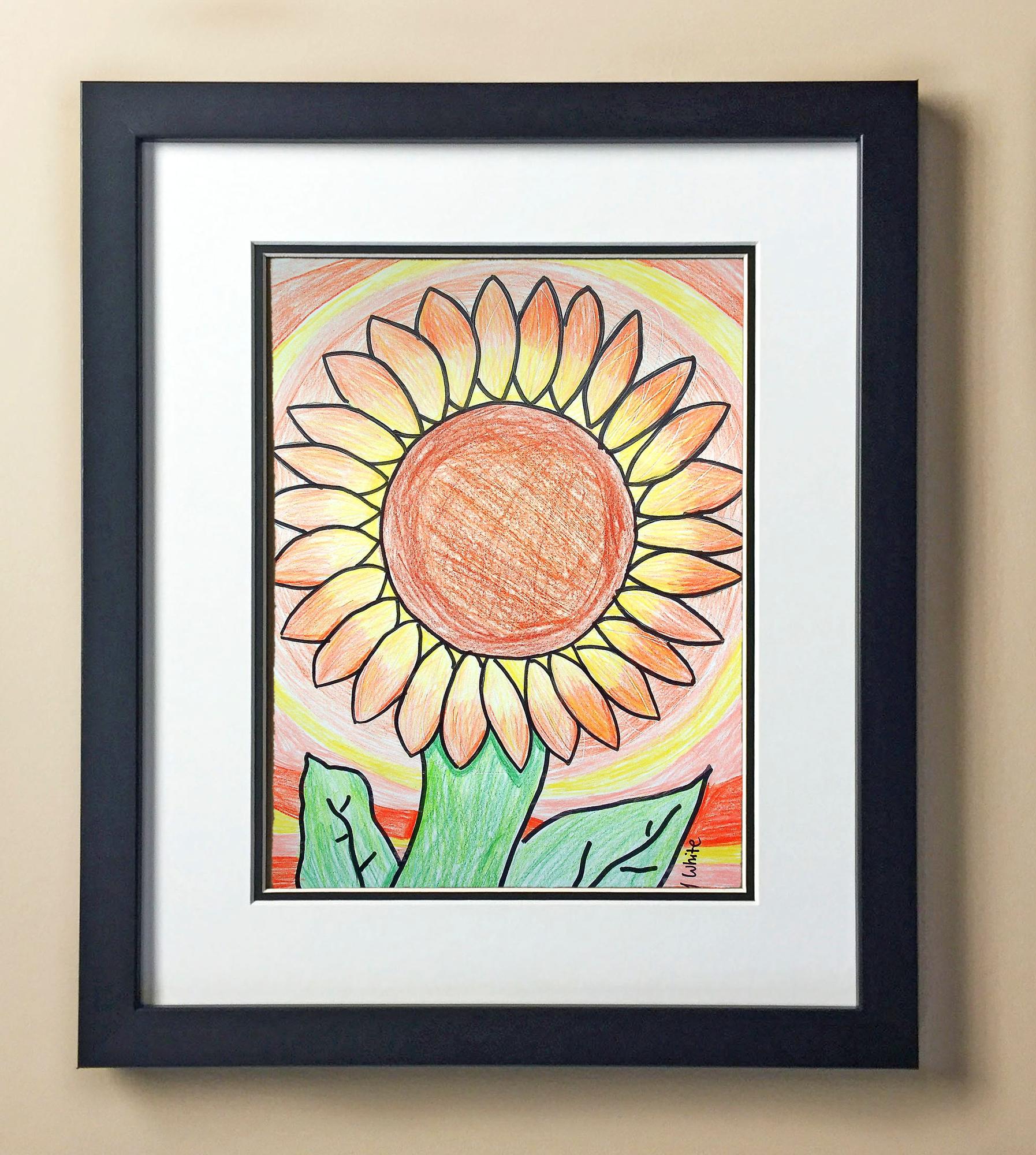 Included with the purchase is the Students Artwork, Frame, double matboard, shatter proof plexiglass, and a ready to hang backerboard with turnbuttons