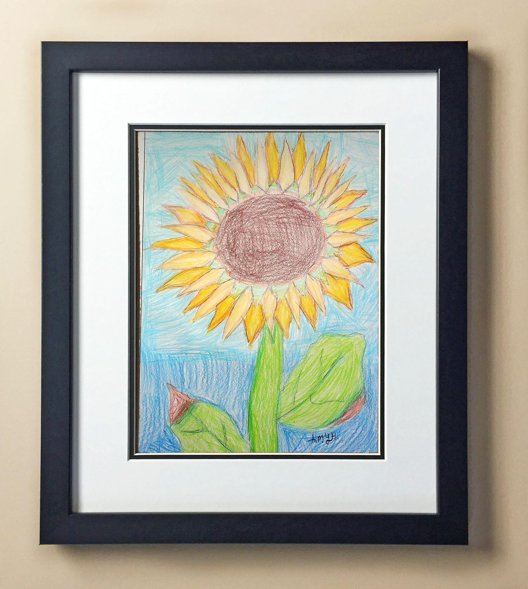 Included with the purchase is the Students Artwork, Frame, double matboard, shatter proof plexiglass, and a ready to hang backerboard with turnbuttons