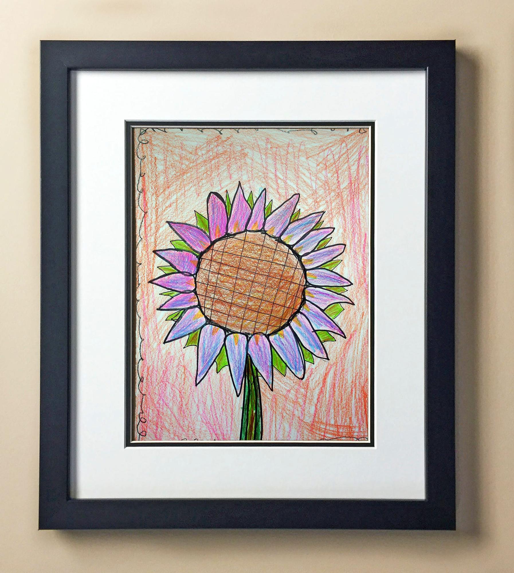 Included with the purchase is the Students Artwork, Frame, double matboard, shatter proof plexiglass, and a ready to hang backerboard with turnbuttons