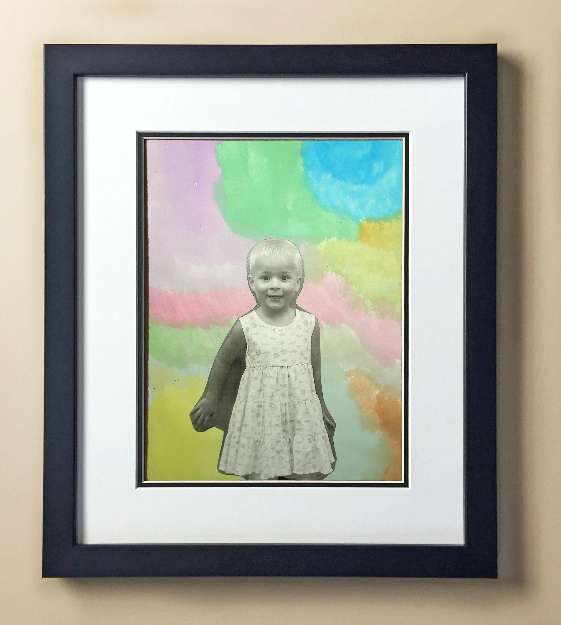 Included with the purchase is the Students Artwork, Frame, double matboard, shatter proof plexiglass, and a ready to hang backerboard with turnbuttons