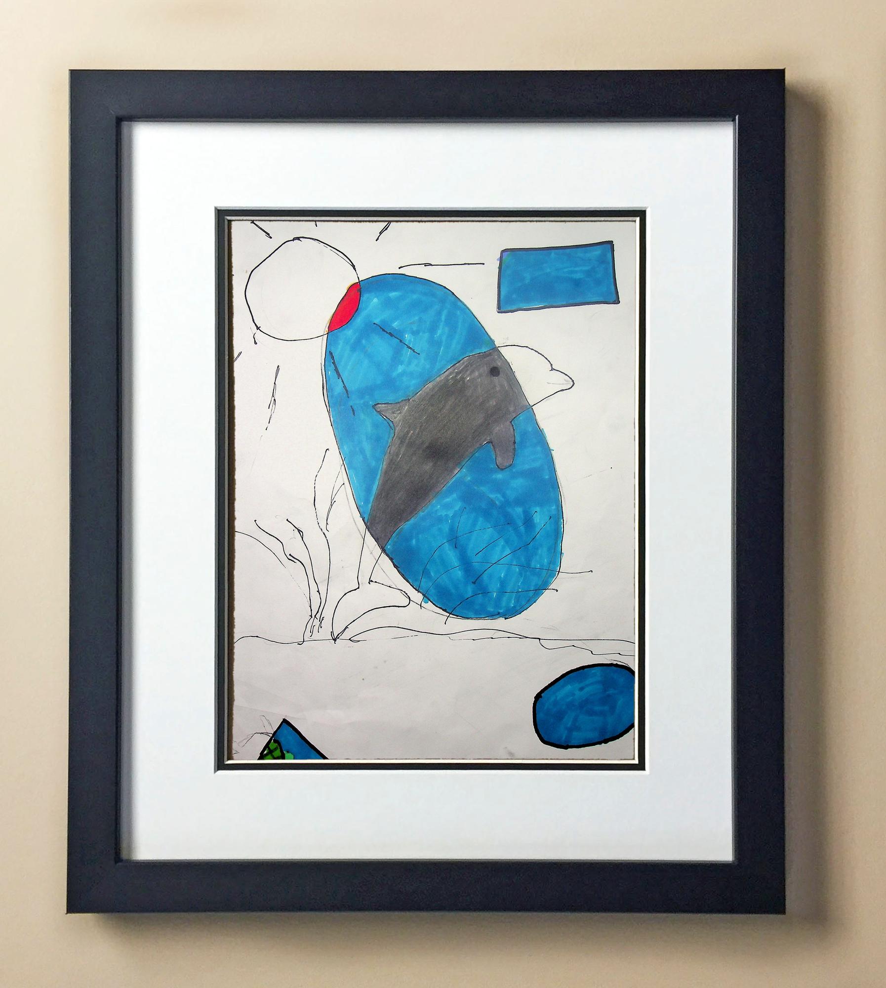 Included with the purchase is the Students Artwork, Frame, double matboard, shatter proof plexiglass, and a ready to hang backerboard with turnbuttons