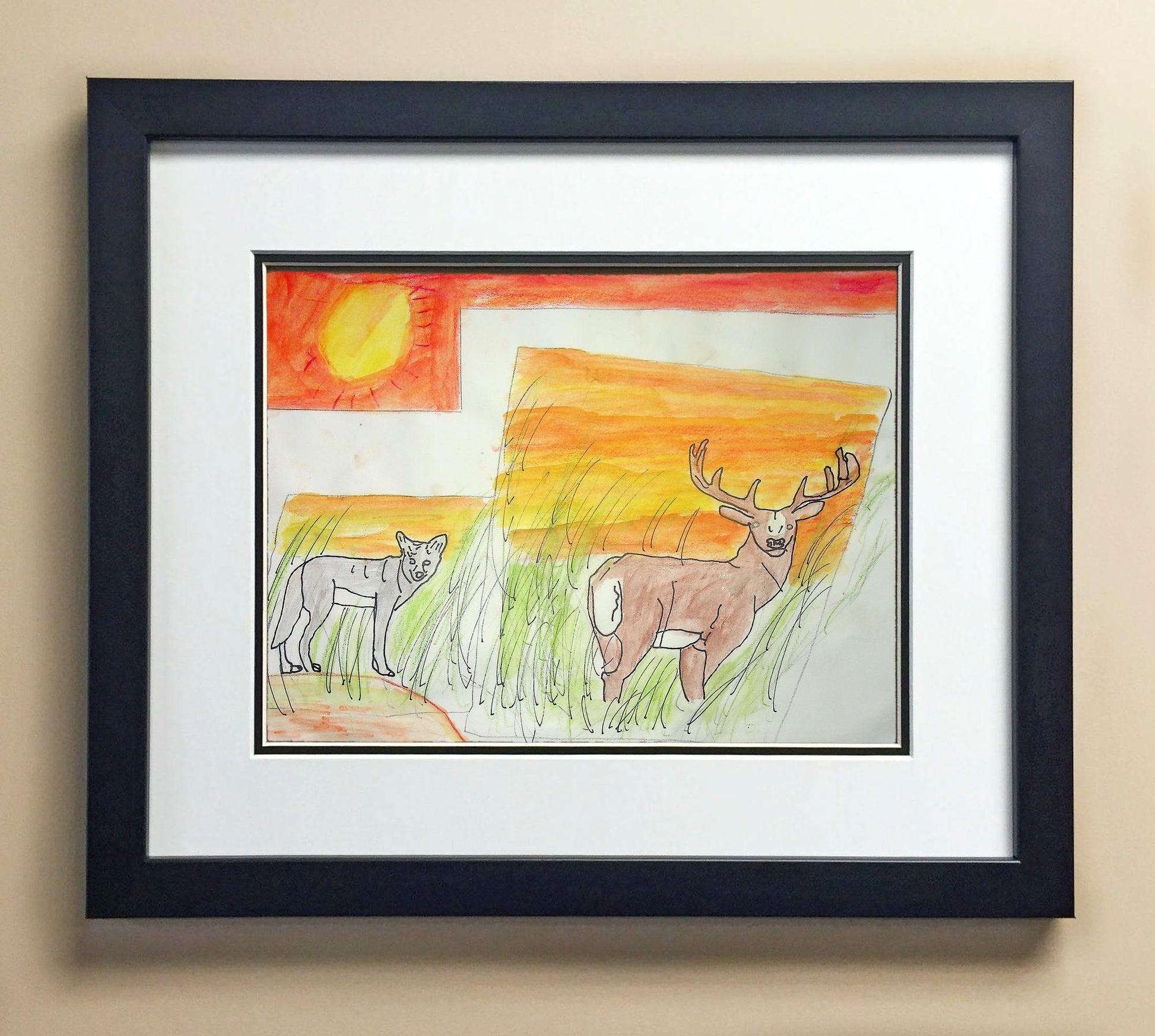 Included with the purchase is the Students Artwork, Frame, double matboard, shatter proof plexiglass, and a ready to hang backerboard with turnbuttons
