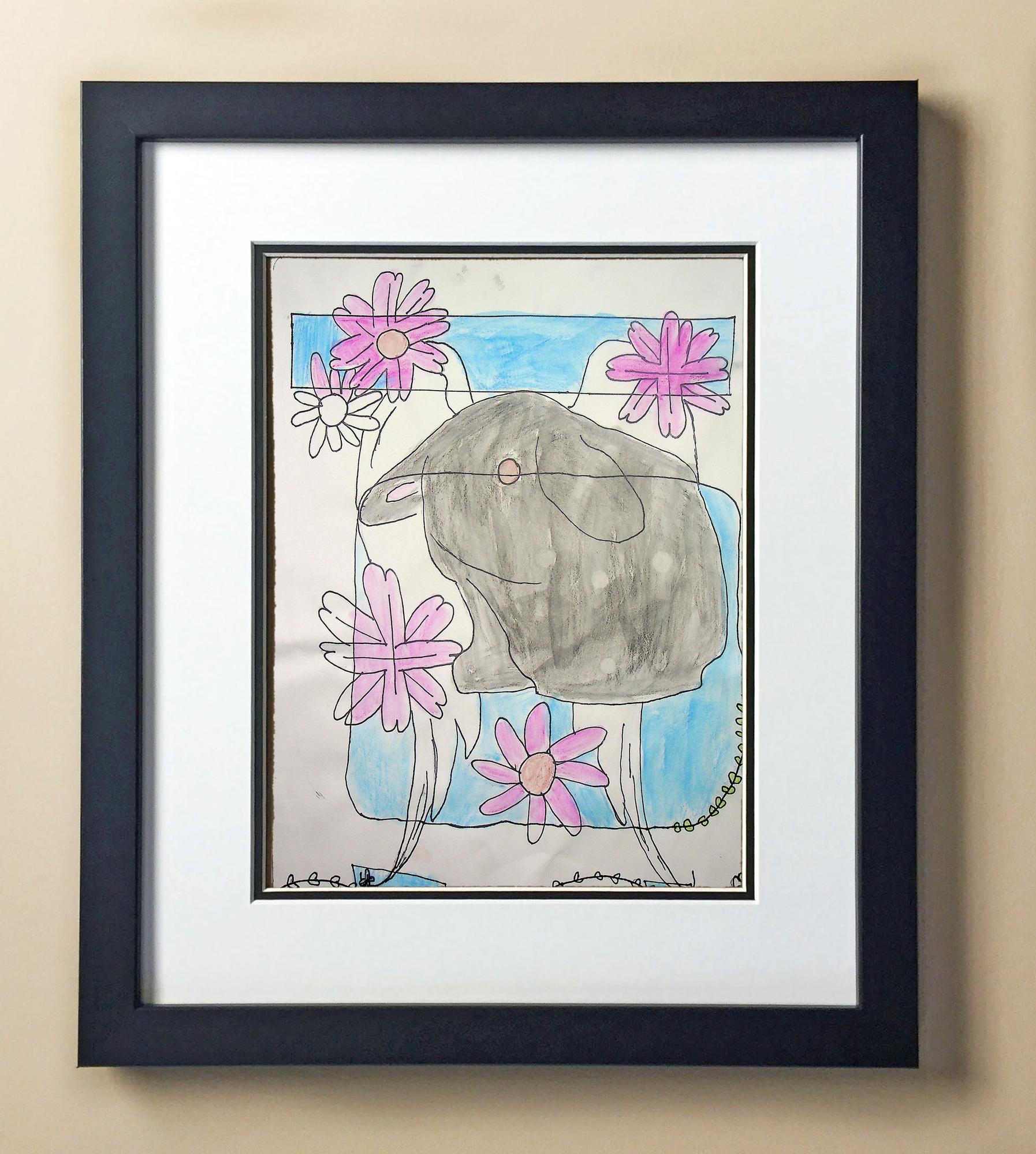 Included with the purchase is the Students Artwork, Frame, double matboard, shatter proof plexiglass, and a ready to hang backerboard with turnbuttons