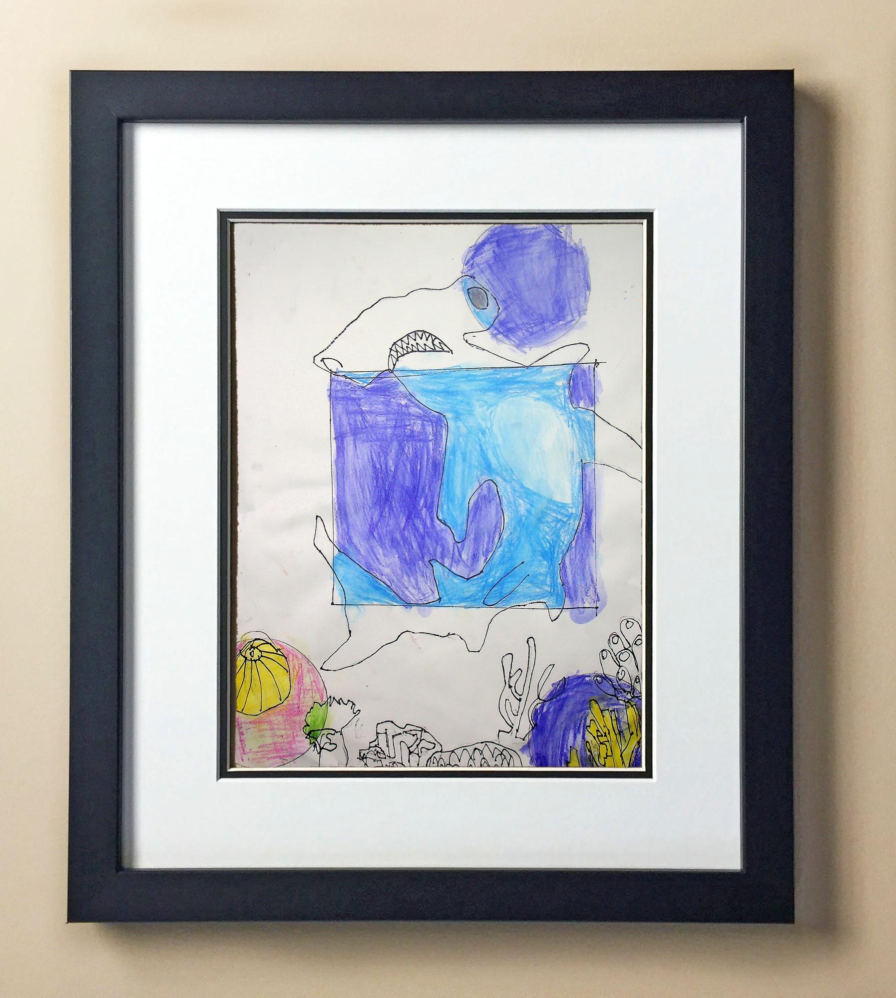 Included with the purchase is the Students Artwork, Frame, double matboard, shatter proof plexiglass, and a ready to hang backerboard with turnbuttons