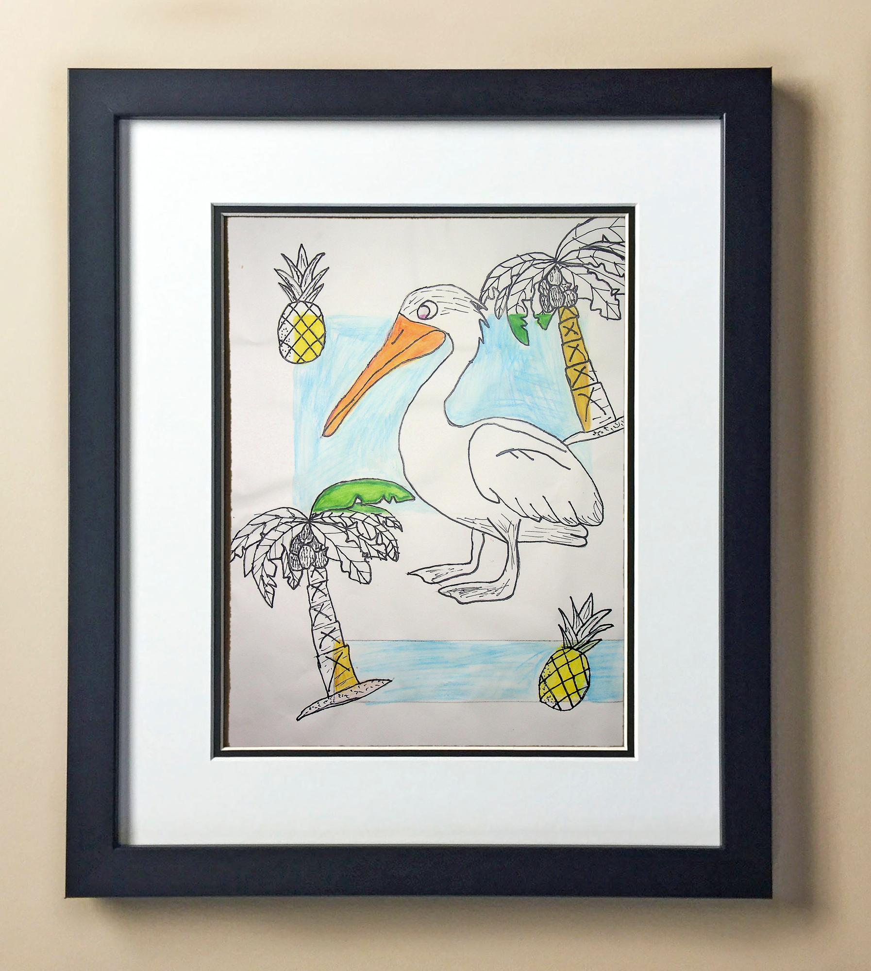 Included with the purchase is the Students Artwork, Frame, double matboard, shatter proof plexiglass, and a ready to hang backerboard with turnbuttons