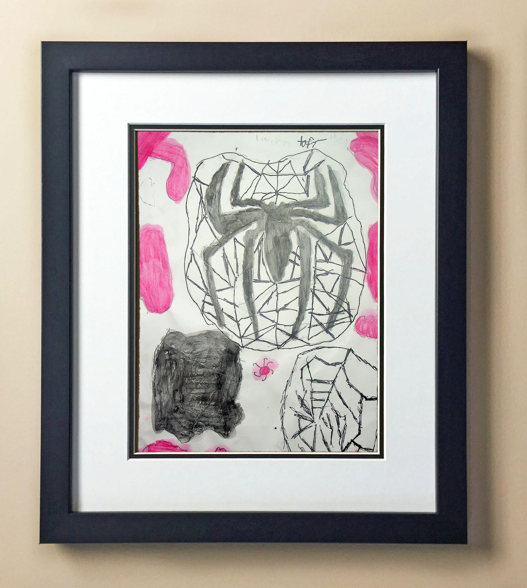 Included with the purchase is the Students Artwork, Frame, double matboard, shatter proof plexiglass, and a ready to hang backerboard with turnbuttons