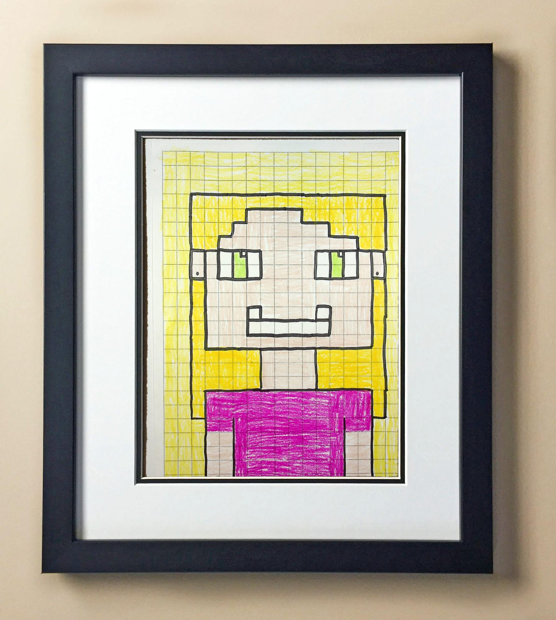 Included with the purchase is the Students Artwork, Frame, double matboard, shatter proof plexiglass, and a ready to hang backerboard with turnbuttons