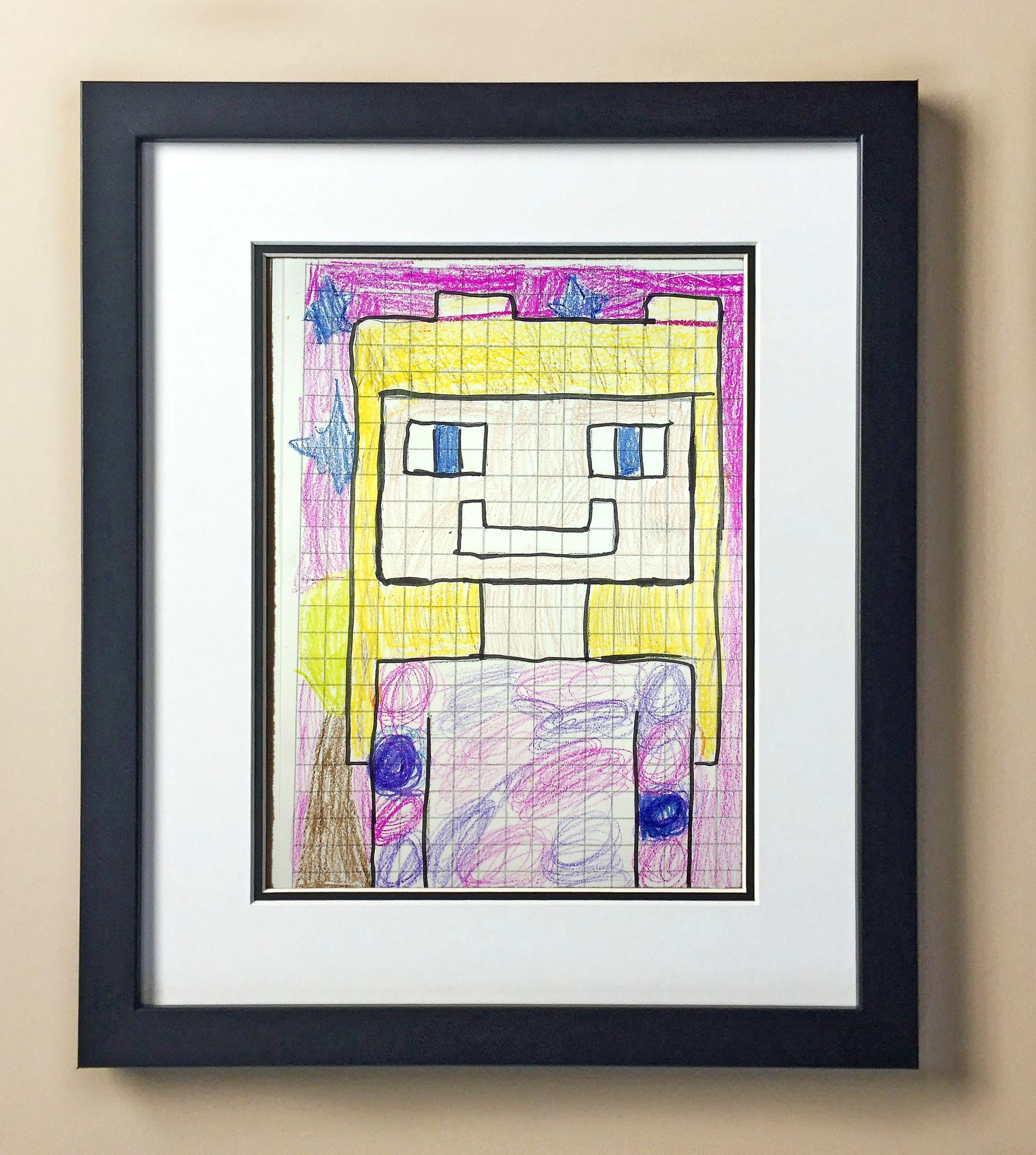 Included with the purchase is the Students Artwork, Frame, double matboard, shatter proof plexiglass, and a ready to hang backerboard with turnbuttons