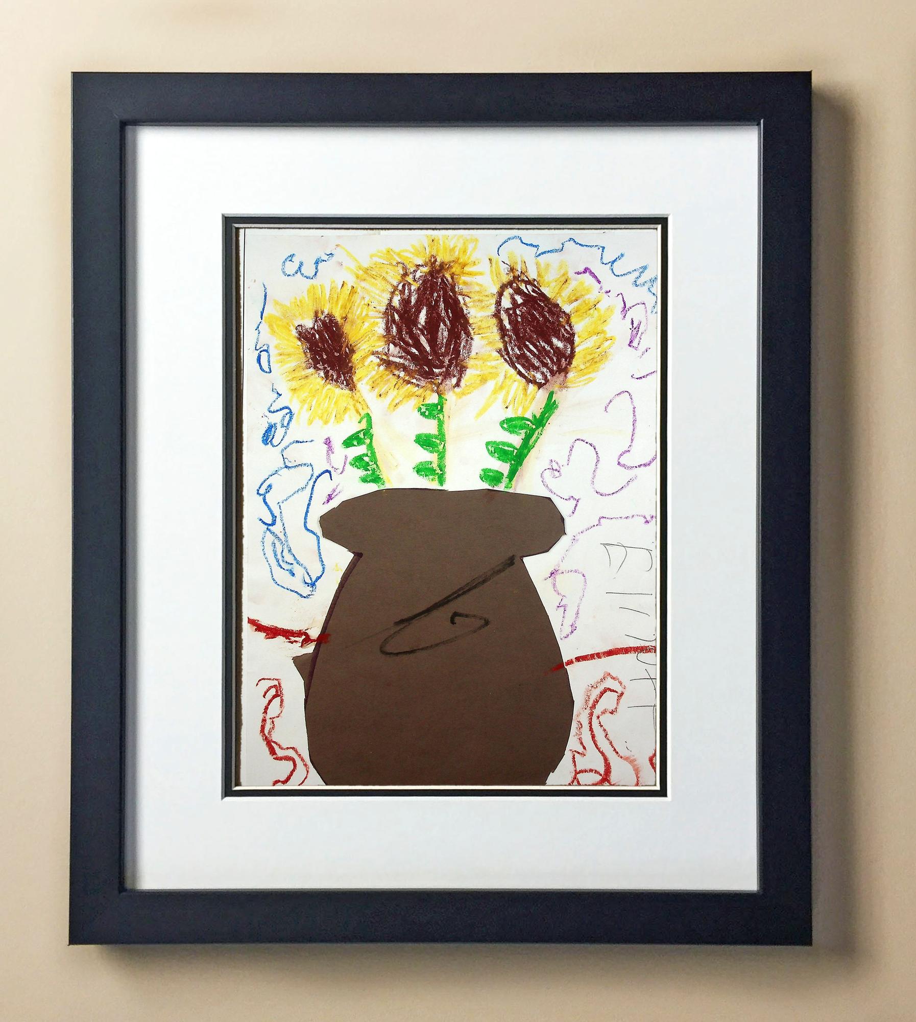 Included with the purchase is the Students Artwork, Frame, double matboard, shatter proof plexiglass, and a ready to hang backerboard with turnbuttons