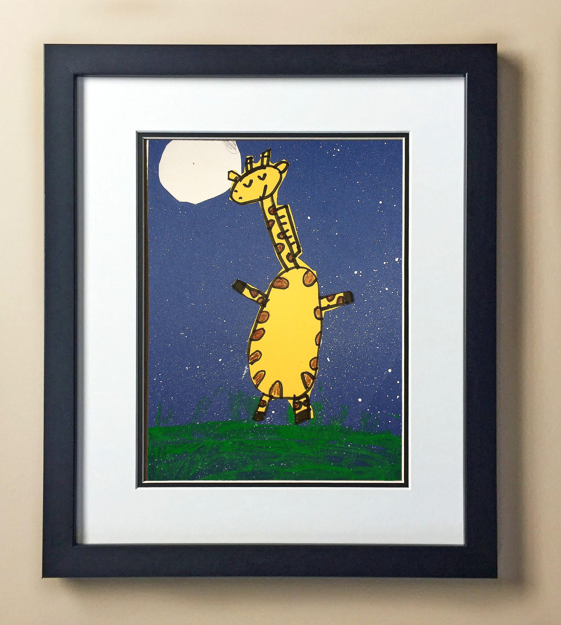 Included with the purchase is the Students Artwork, Frame, double matboard, shatter proof plexiglass, and a ready to hang backerboard with turnbuttons