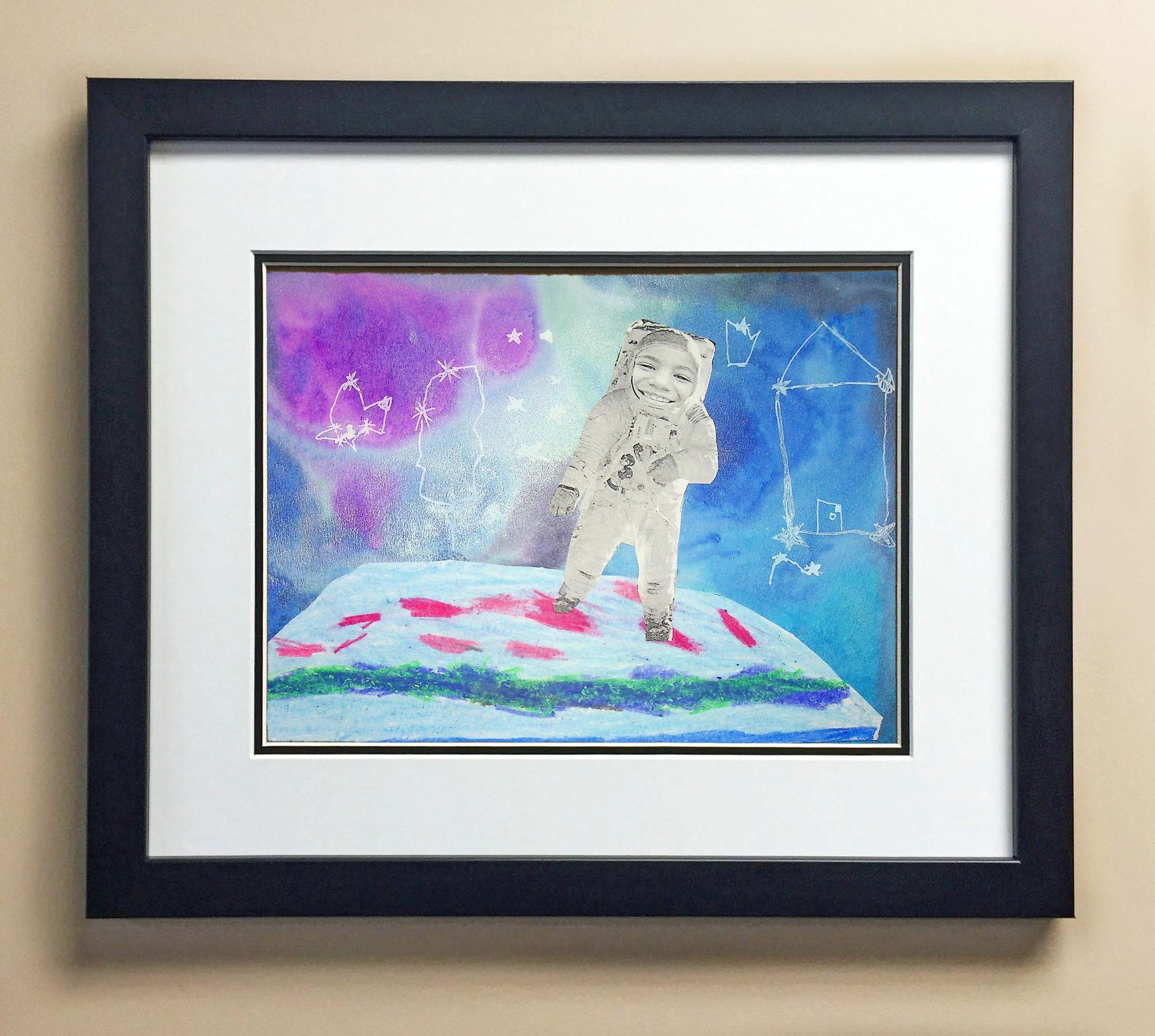 Included with the purchase is the Students Artwork, Frame, double matboard, shatter proof plexiglass, and a ready to hang backerboard with turnbuttons