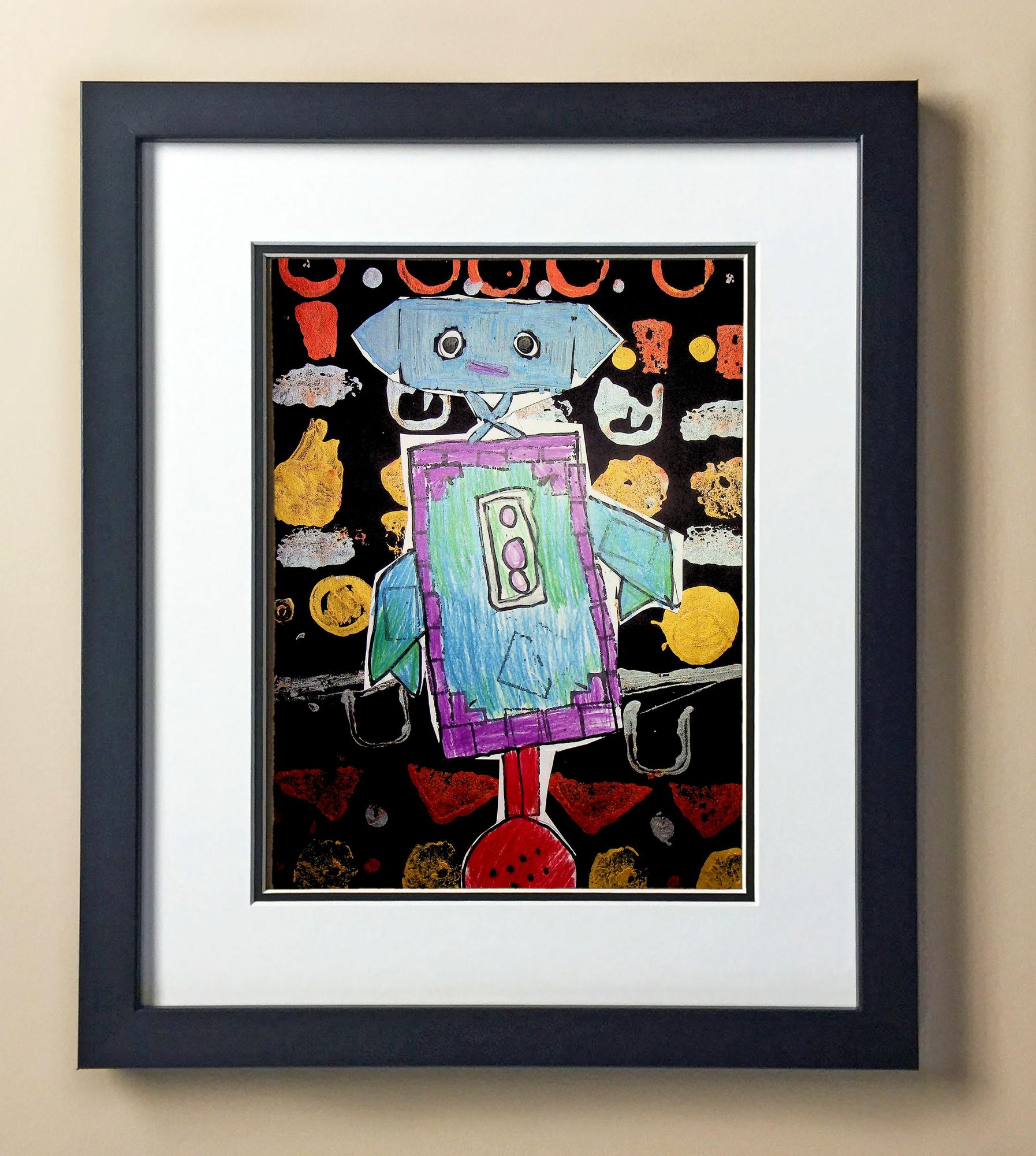 Included with the purchase is the Students Artwork, Frame, double matboard, shatter proof plexiglass, and a ready to hang backerboard with turnbuttons