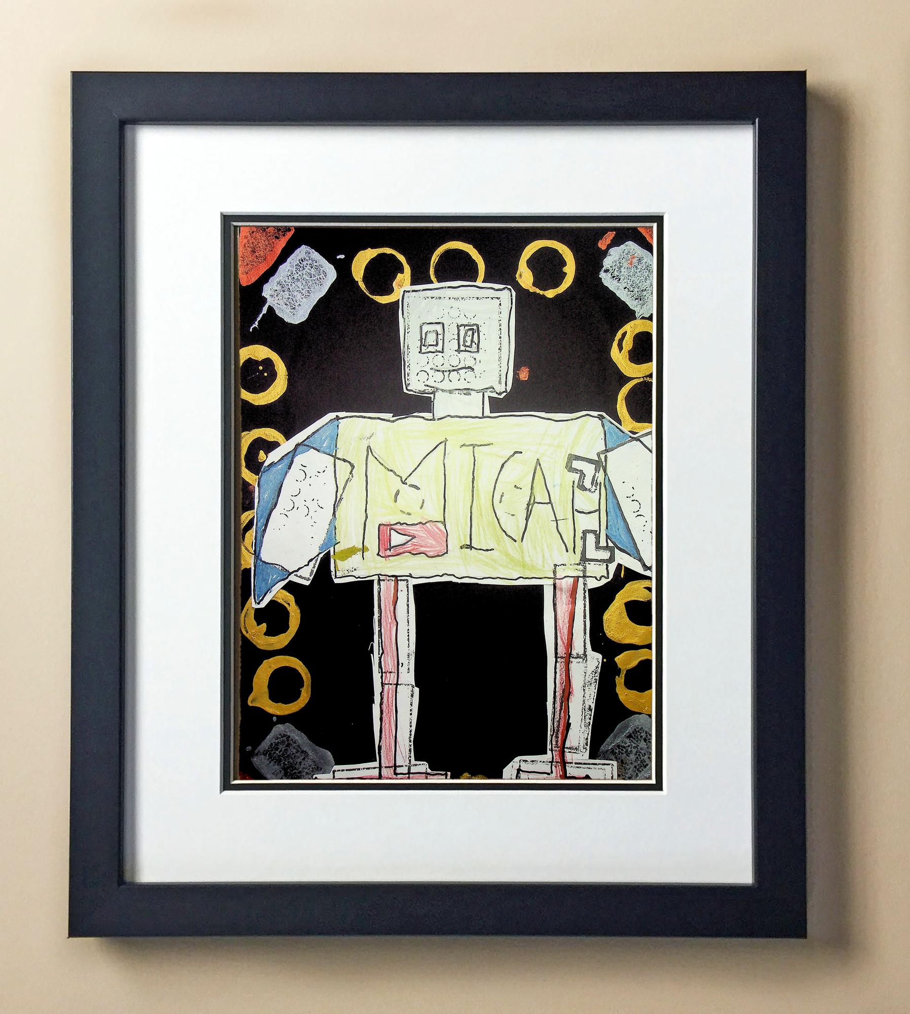 Included with the purchase is the Students Artwork, Frame, double matboard, shatter proof plexiglass, and a ready to hang backerboard with turnbuttons